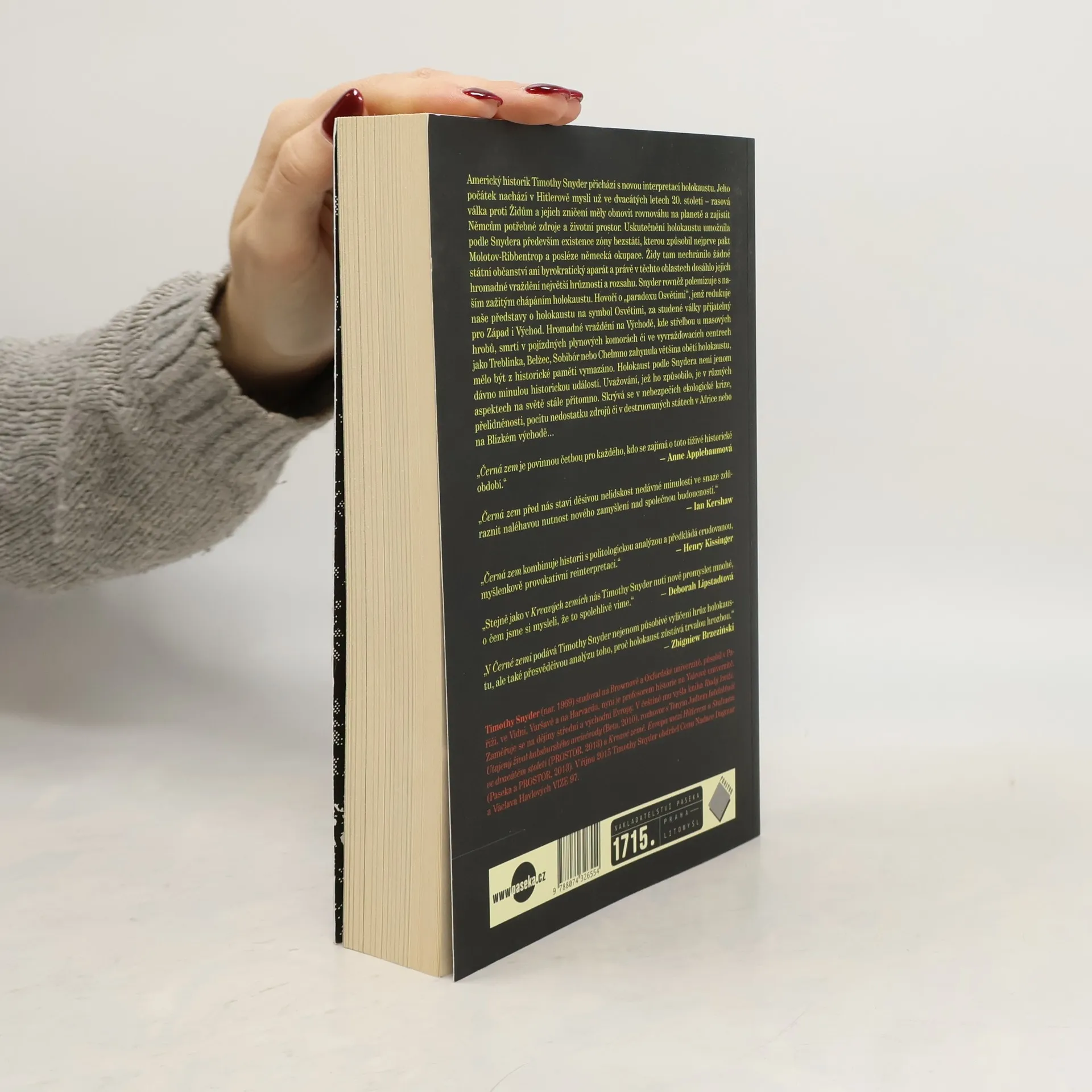 Kdo přišel s myšlenkou "konečného řešení židovské otázky" a jak vznikly politické a společenské podmínky k jejímu uskutečnění? Kdo zabíjel a kdo byl přímým spolupachatelem? Kdo naopak pomáhal a zachraňoval? A kdo určoval, která jména mají zůstat v historické paměti a která z ní naopak mají zmizet? Timothy Snyder odpovídá na tyto otázky v souborné historické analýze, která v mnoha důležitých bodech polemizuje se standardními výklady holokaustu a podstatným způsobem mění zažité chápání této klíčové události moderních dějin: hovoří například o "paradoxu Osvětimi" jakožto symbolu, který přes všechnu svou hrůznost současně umožňuje na mnoho otřesných souvislostí válečného dění zapomenout. Hromadné vyvraždění evropských Židů se v jeho rozboru ukazuje jako skrytý základ mnoha prvků poválečného politického a společenského uspořádání východní Evropy a také jako trvalá hrozba, vyvstávající tehdy, snažíme-li se politické otázky násilně zjednodušovat a podřizovat jednotícím klíčům.