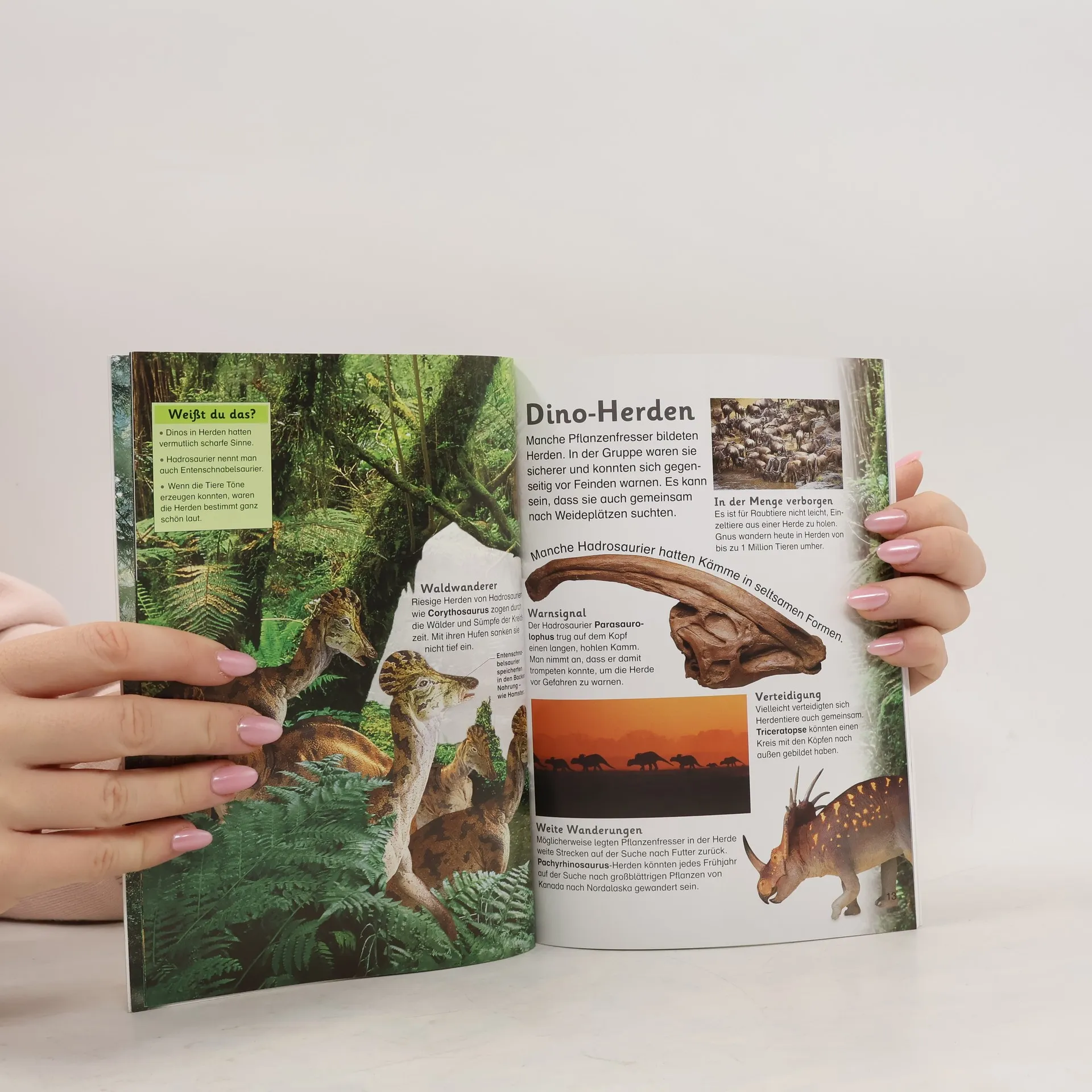Lesen, staunen, mitmachen – das ist das Motto von memo Kids! Wann lebten die Dinosaurier? Wie groß waren die Zähne des Tyrannosaurus rex? In Band 2 der Wissensreihe für Erstleser dreht sich alles um Dinos. Kurze, lebendige Texte erzählen Spannendes über das Leben urzeitlicher Tiere. Faszinierende Bilder zum Staunen zeigen unterschiedliche Saurier, Flugsaurier und Meeresreptilien. Die altersgerecht aufbereiteten Informationen sind für Leseanfänger einfach verständlich, so dass auch schwierige Zusammenhänge deutlich werden. Viele bunte Fotografien und Illustrationen veranschaulichen das Thema und helfen, das Gelesene zu begreifen. Wissenstests, Bilderrätsel und eine Dino-Rallye regen zum Mitmachen an und vertiefen spielerisch das Gelernte. Ein Glossar am Ende des Buches erklärt schwierige Wörter und »Weißt du das?«-Kästen heben besonders interessante Fakten hervor. Durch die optimale Ausgewogenheit von Bild und Text ist »memo Kids – Dinosaurier« ideal zum Vor- oder Selberlesen geeignet. Wissen zum Sammeln: Alle memo Kids Bände sind nummeriert und sind mit einem durchgängigen Rückendesign gestaltet – so wächst mit jedem neuen Band auf dem Bücherregal ein cooles Motiv mit! Dieses Buch ist bei Antolin.de verfügbar.