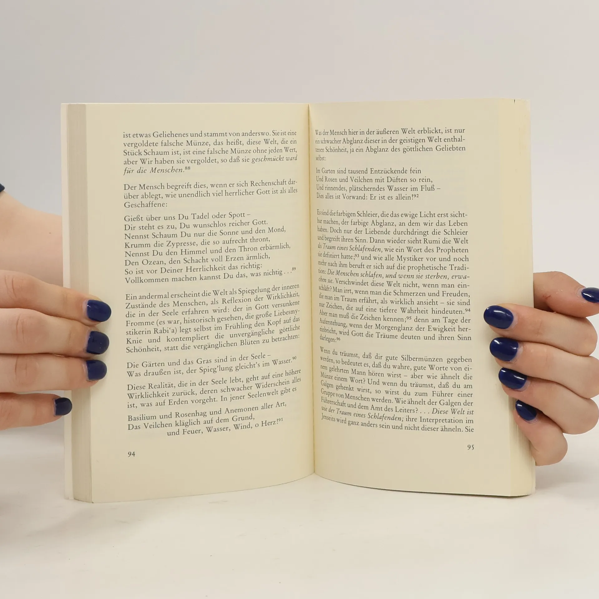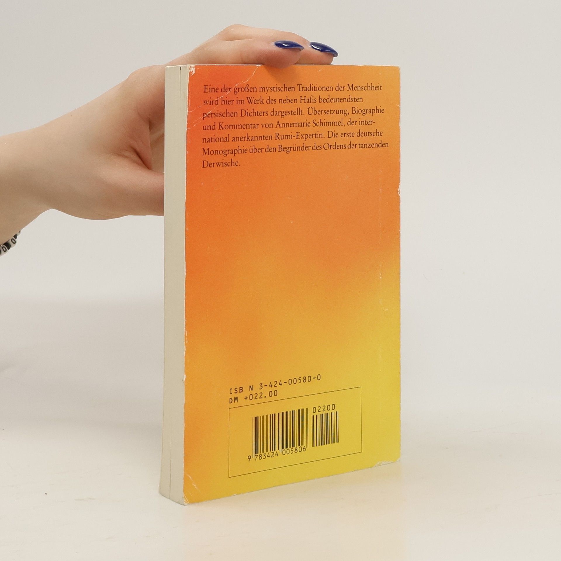 Dschelaleddin Rumi (1207-1273), genannt Maulana, "unser Meister", wurde am nördlichen Rand des afghanischen Zentralmassivs in Balch geboren, einer Stadt, die als Zentrum der Gelehrsamkeit und der asketischen Frömmigkeit im östlichen islamischen Gebiet galt. Er verbrachte den größten Teil seines Lebens in Konya in Anatolien, dem Land der "Romäer", Rum - daher sein Name "Rumi". Nach dem Studium der "äußeren" Wissenschaften, vor allem der arabischen Poesie, wurde Rumi in die Geheimnisse der Mystik eingeweiht. Der Dichter verfaßte neben seiner Lehrtätigkeit lyrische Poesie, Prosaschriften, Predigten und Briefe. Als sein Hauptwerk gilt das mystische Lehrgedicht "Mathnawi", das der persische Dichter Dschami als "Koran in persischer Zunge" bezeichnete.