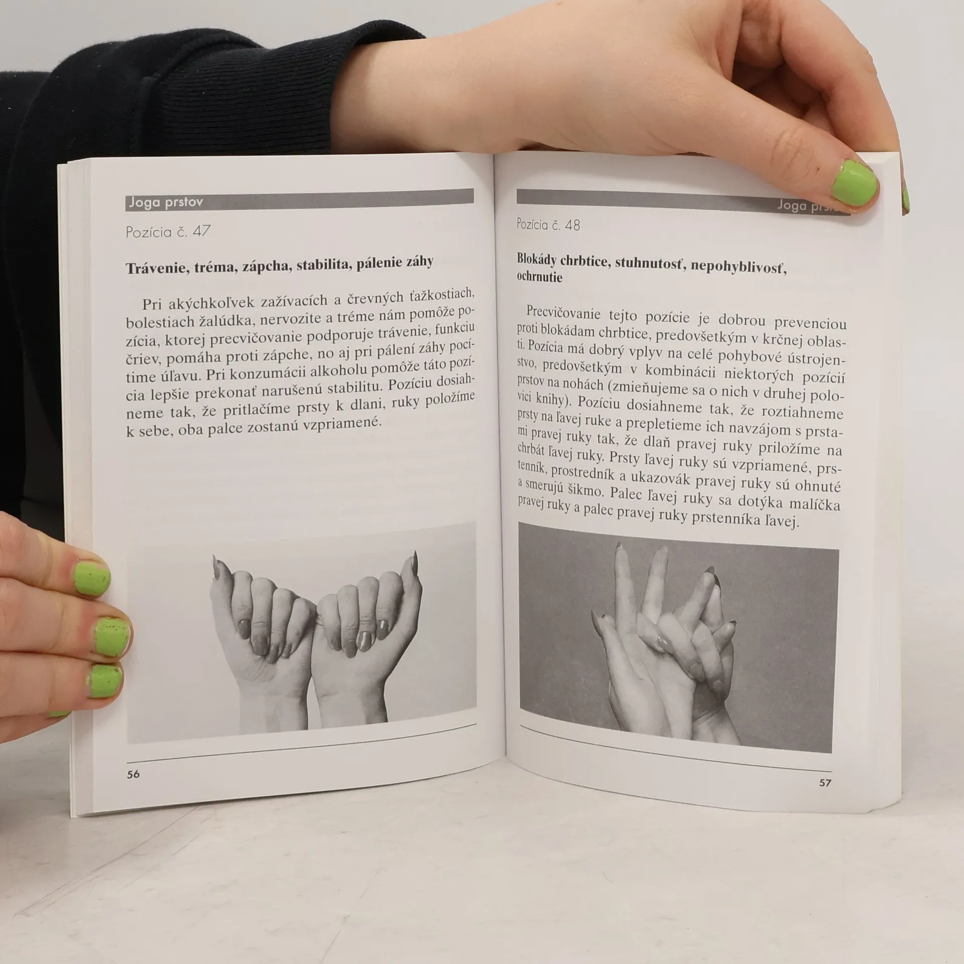 Přední česká astroložka a autorka mnoha knih o józe, alternativní medicíně a léčitelství vysvětluje v knize jednoduché způsoby, jak upevnit a postupně zlepšit duševní a fyzickou rovnováhu člověka. Uvádí téměř 120 pozic rukou a nohou pro krásu, svěžest, meditaci i léčbu. Kombinuje je s aromaterapií, muzikoterapií, zpěvem a dechovým cvičením.