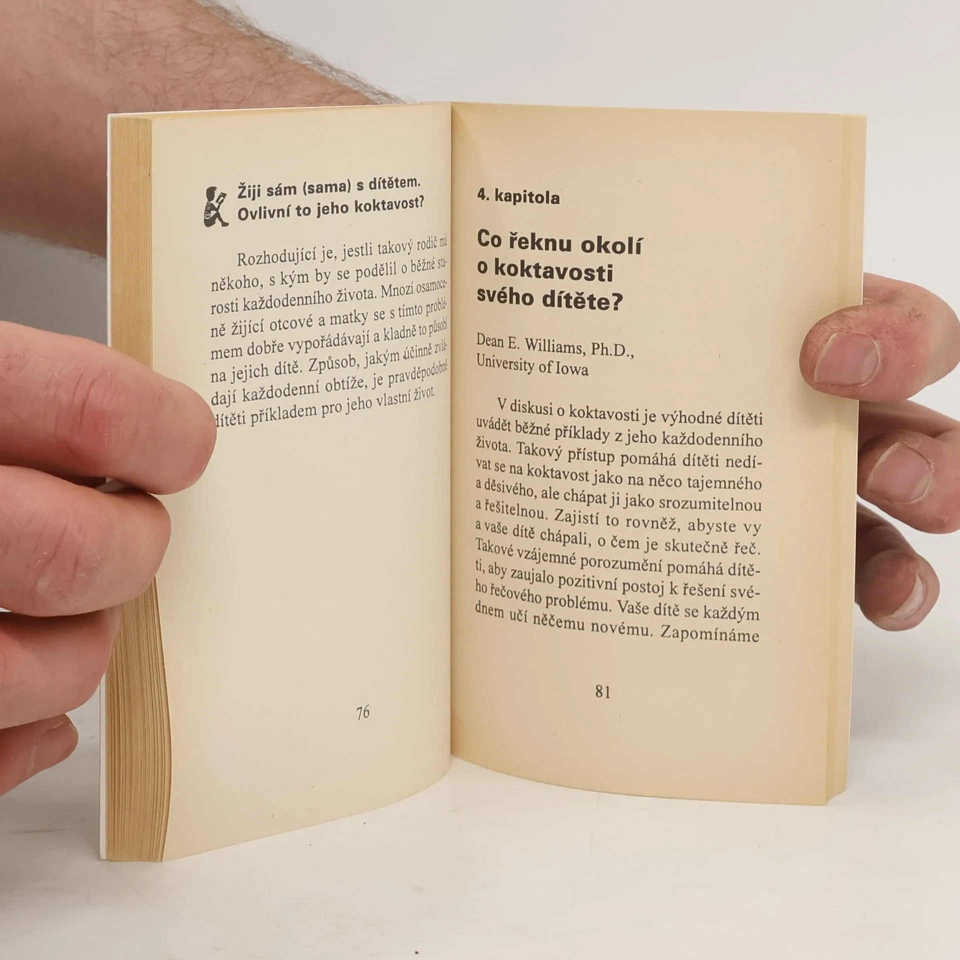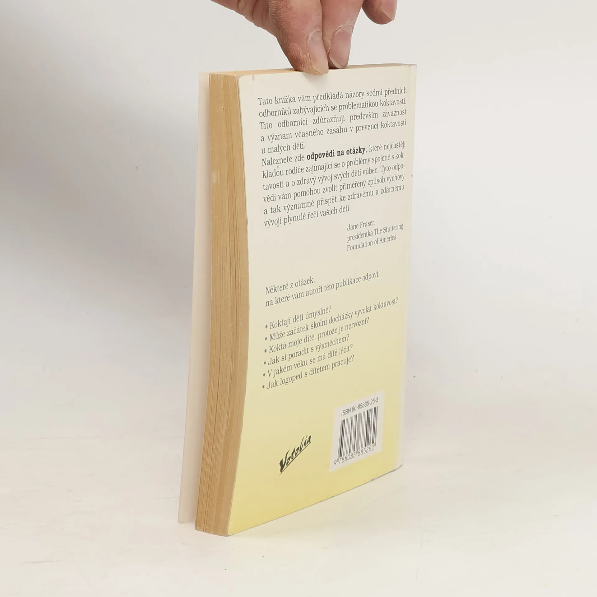Tato knížka vám předkládá názory sedmi předních odborníků zabývajících se problematikou koktavosti. Tito odborníci zdůrazňují především závažnost a význam včasného zásahu v prevenci koktavosti u malých dětí. Naleznete zde odpovědi na otázky, které nejčastěji kladou rodiče zajímající se o problémy spojené s koktavostí a o zdravý vývoj svých dětí vůbec. Tyto odpovědi vám pomohou zvolit přiměřený způsob výchovy a tak významně přispět ke zdravému a zdárnému vývoji plynulé řeči vašich dětí.