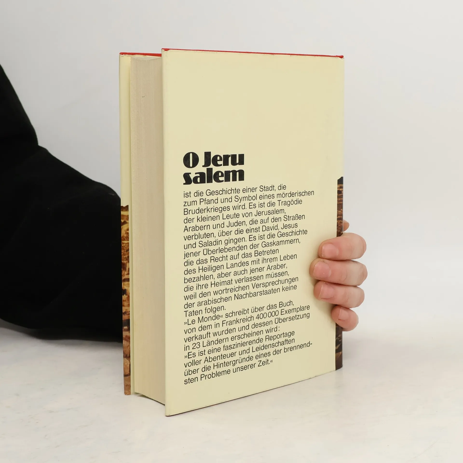 Der ausführliche Bericht von Larry Collins und Dominique Lapierre über den ersten jüdisch-arabischen Krieg (1948/49), der in einem erbitterten Ringen um Jerusalem gipfelte, schildert die geschichtlichen Ursachen, den Verlauf und die menschliche Tragik einer Auseinandersetzung, die die Welt in Atem hielt. Das in 23 Sprachen übersetzte Buch verwertet alle erreichbaren Dokumente und gewinnt durch die Aussagen der Beteiligten beider Seiten eine packende Authentizität.