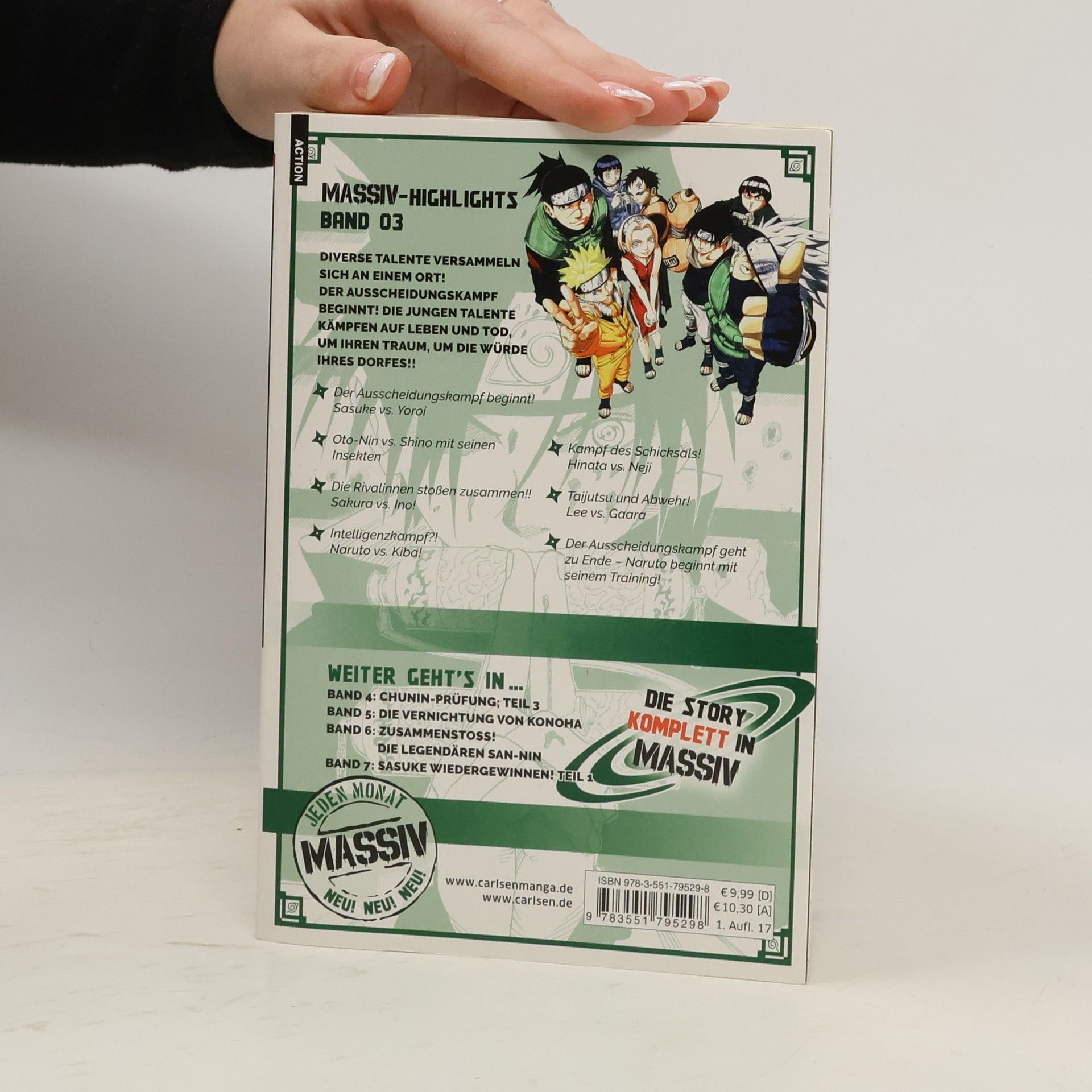 NARUTO Neuedition Die fette Neuauflage des berühmtesten Ninja ever! In 700 Kapiteln bewies Naruto immer wieder, wie stark sein Wille war ein guter Ninja zu werden, aber auch wie unglaublich groß sein Hang zum Blödsinn war. Über die Jahre erlernte Naruto alle Ninja-Techniken und rettete die Welt vor ihrem sicheren Untergang! Nun kommt die Klopper-Neuausgabe mit zum Teil über 800 Seiten zum Monster-Hammer-Preis von 9,99 €! Die muss man haben!