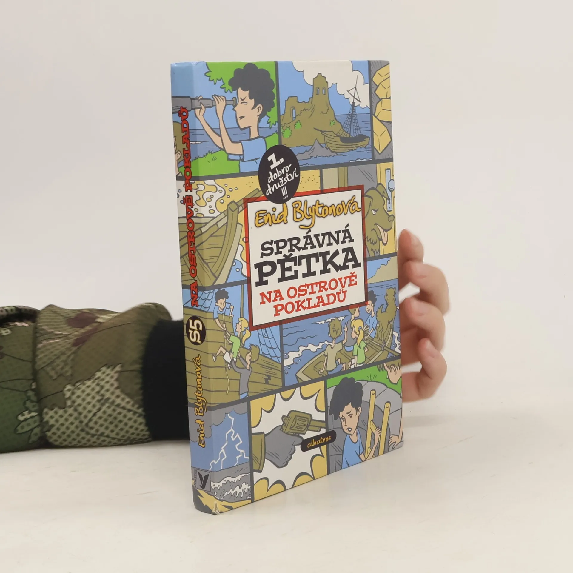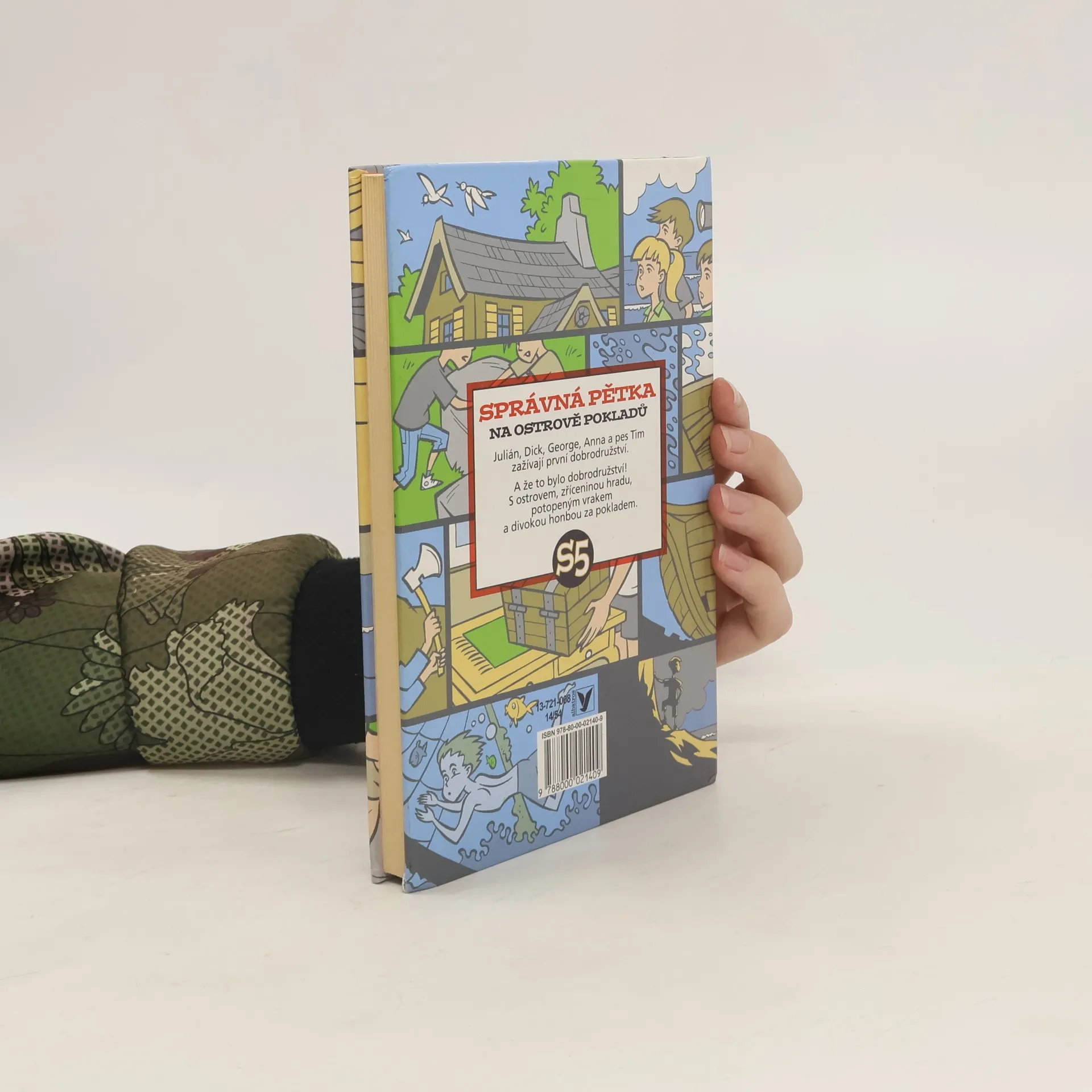 Správná pětka, to jsou ve skutečnosti čtyři a pes! Julián, Dick, George, Anna a pes Tim. Taky byste si přáli mít vlastní ostrov, který by byl jen a jen váš? A zažít takové dobrodružství jako Správná pětka? Plavili byste se po moři, přespávali v bouři ve zřícenině starého hradu a prozkoumali potopený vrak! A jak má takové správné dobrodružství skončit? Přece honbou za pokladem!