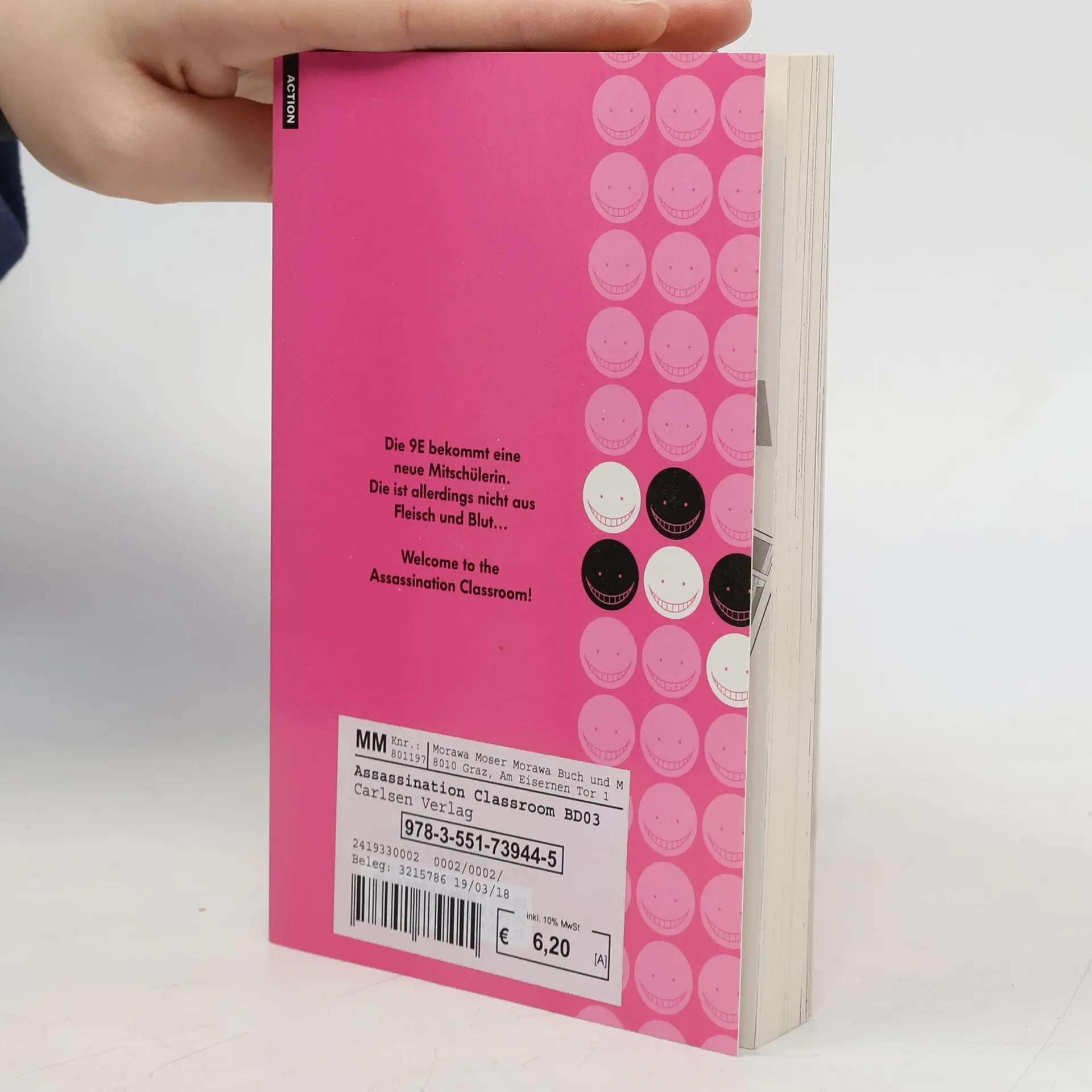 Die Erde wird von einer gelben Monsterkrake bedroht! Die letzte Hoffnung der Menschheit: Die Versagerklasse der Kunugigaoka Junior Highschool...! Die 9E bekommt eine neue Mitschülerin. Die ist allerdings nicht aus Fleisch und Blut... Absolut einzigartig und abgefahren mit einer Riesenportion Humor – Welcome to the Assassination Classroom! Weitere Infos: - abgeschlossen in 21 Bänden - empfohlen ab 12 Jahren - Anime-Adaption auf Crunchyroll - idealer Einstieg für Manga-Neulinge