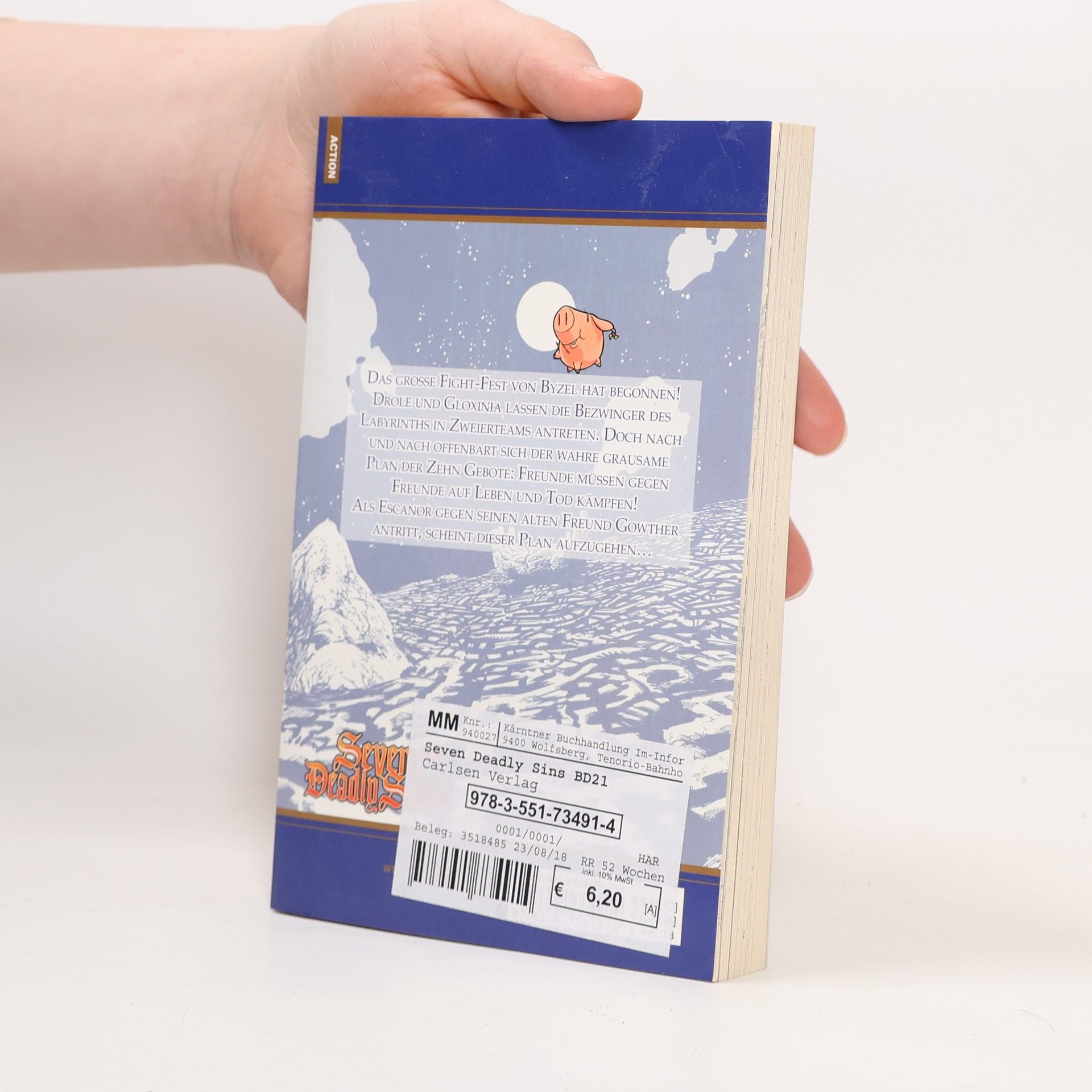 Die sieben Todsünden kämpfen für das Gute! Das große Fight-Fest von Byzel hat begonnen! Drole und Gloxinia lassen die Bezwinger des Labyrinths in Zweierteams antreten. Doch nach und nach offenbart sich der wahre grausame Plan der Zehn Gebote: Freunde müssen gegen Freunde auf Leben und Tod kämpfen! Als Escanor gegen seinen alten Freund Gowther antritt, scheint dieser Plan aufzugehen… Der actionreiche Fantasymanga SEVEN DEADLY SINS punktet mit viel Witz, aber auch Drama. Durch seine riesige Beliebtheit wurde dieser Bestseller von Nakaba Suzuki daher bereits als Anime umgesetzt und hat einen Kinofilm sowie Videospielumsetzungen für Playstation 4 und Smartphones/Tablets. Weitere Informationen: - Perfekt für Fans von Dragon Ball, Fairy Tail, One Piece und My Hero Academia! - Empfohlen ab 12 Jahren - Abgeschlossen in 41 Bänden
