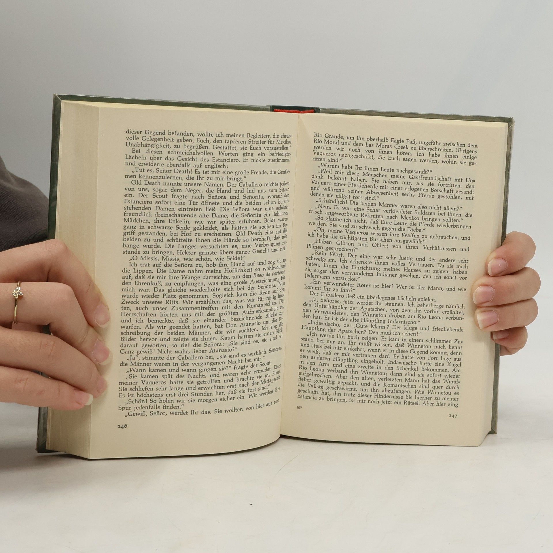Der Leser erfährt, wie der Ich-Erzähler zum berühmten Westmann Old Shatterhand wird und die Freundschaft des edlen Apatschen Winnetou erringt. Das tragische Schicksal Nscho-tschis verleiht dieser Geschichte jenen Hauch von Schwermut, der über dem verzweifelten Todesringen der roten Rasse liegt.