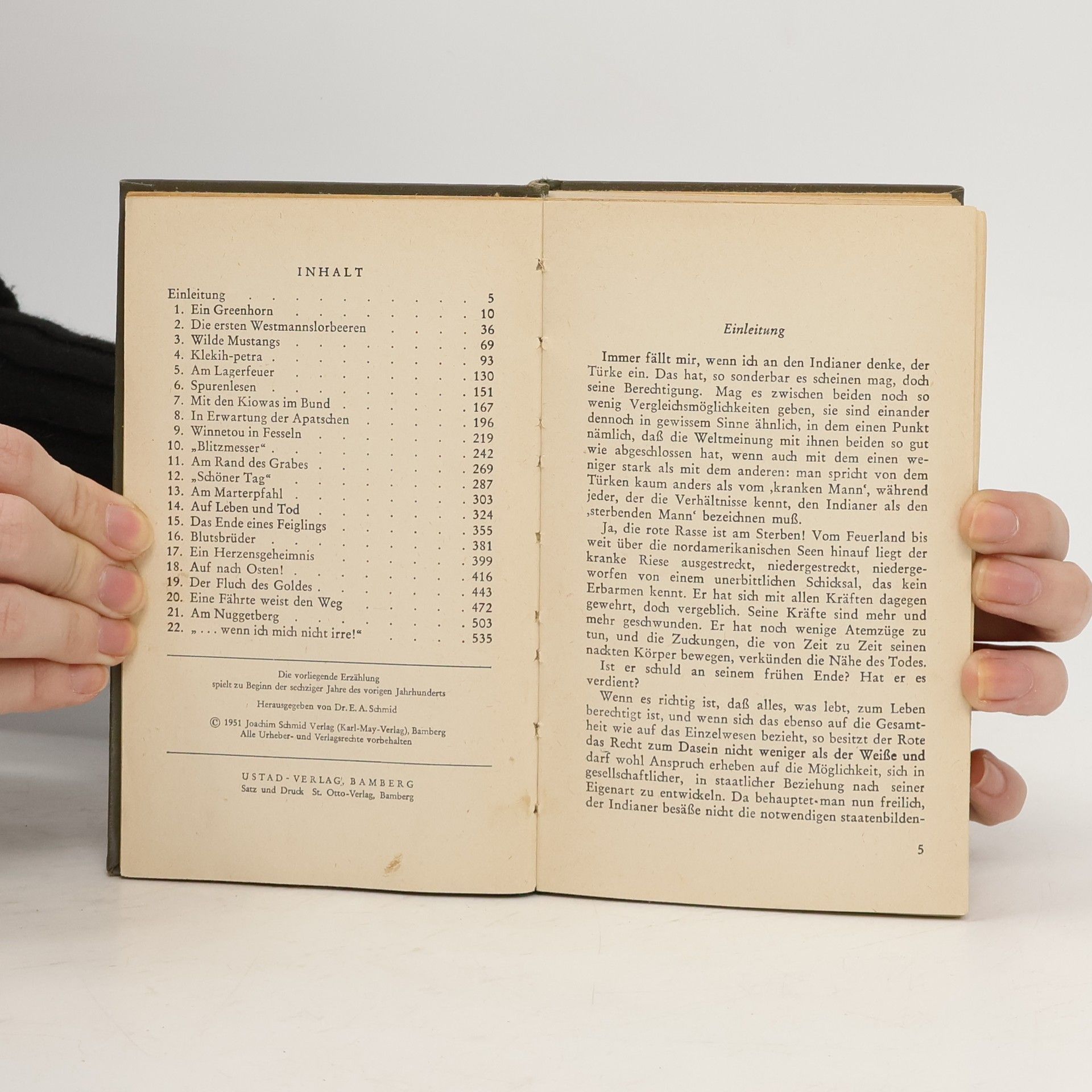 Der Leser erfährt, wie der Ich-Erzähler zum berühmten Westmann Old Shatterhand wird und die Freundschaft des edlen Apatschen Winnetou erringt. Das tragische Schicksal Nscho-tschis verleiht dieser Geschichte jenen Hauch von Schwermut, der über dem verzweifelten Todesringen der roten Rasse liegt.