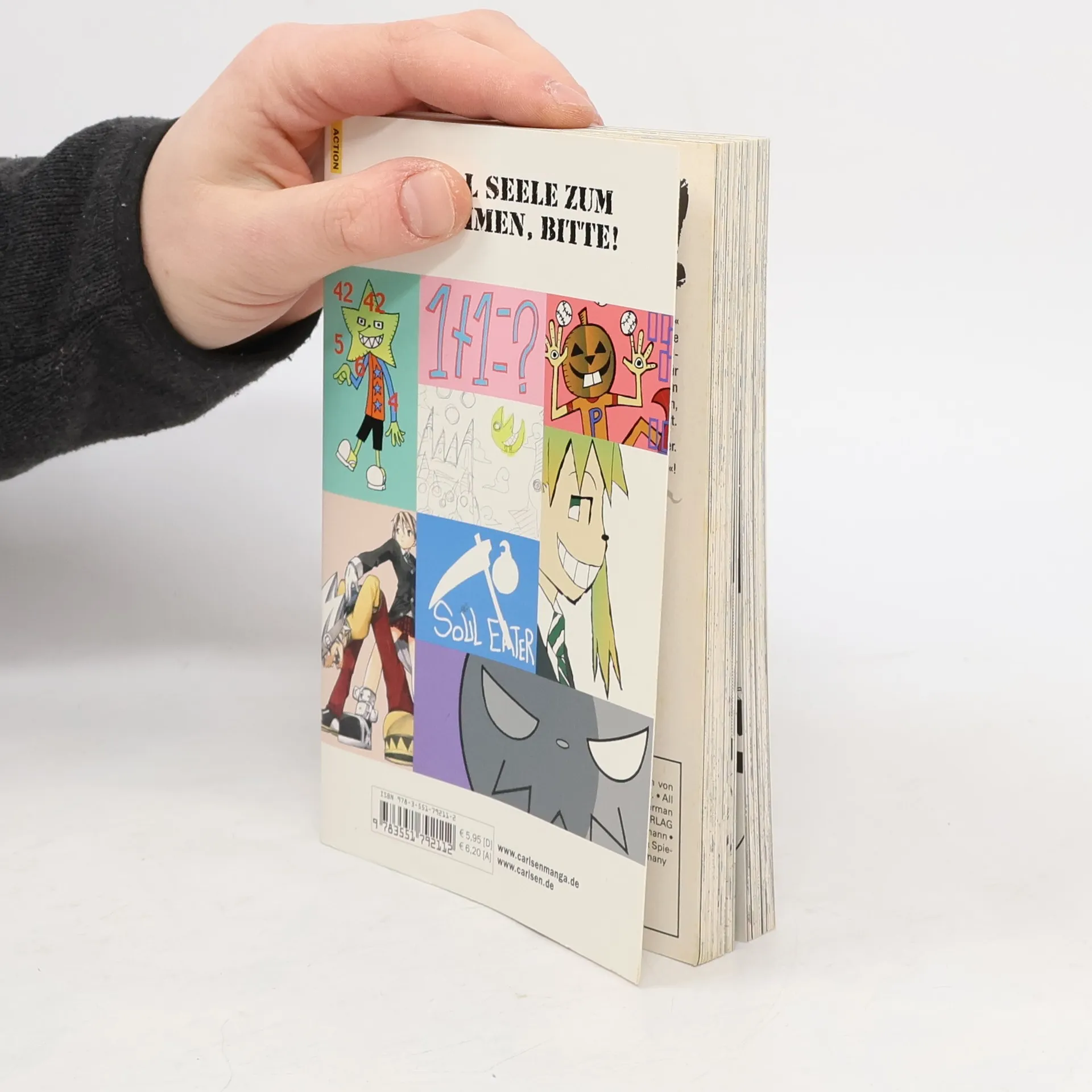 Einmal Seele zum Mitnehmen, bitte! Maka ist eine Waffenschmiedin in spezieller Ausbildung. Ihre Sense namens „Soul Eater“ hat ein Eigenleben und nimmt außerhalb des Kampfes die Gestalt eines ultracoolen Jungen an. Um eine „Waffe des Todesgottes“ zu erschaffen, muss sich Soul Eater exakt 99 böse Seelen und eine Hexenseele einverleiben, nur so kann Maka ihre Ausbildung abschließen. Die nötigen Seelen wurden nach einigem Aufwand „zubereitet“ und verschlungen, doch an der Seele einer Hexe beißen sich die beiden die Zähne aus. Müssen sie nun vielleichtsogar wieder ganz von vorne beginnen...? Eine rasante Fressorgie beginnt, auch zwischen den Mahlzeiten genießbar!