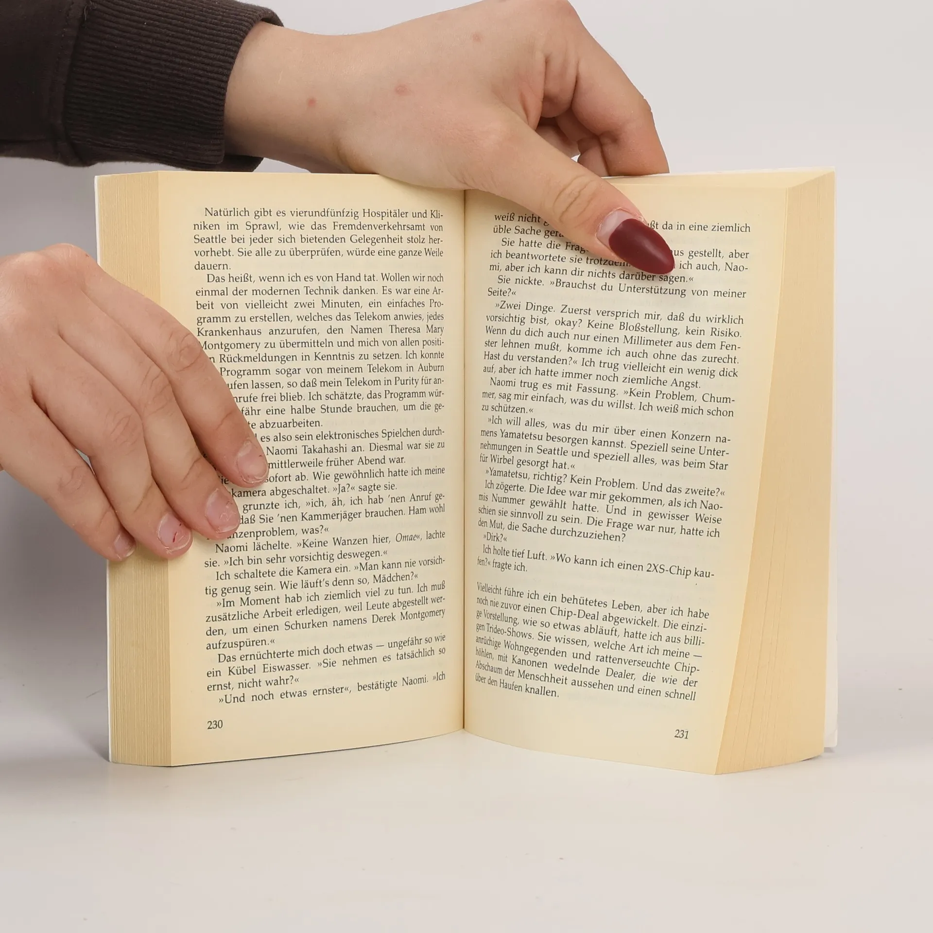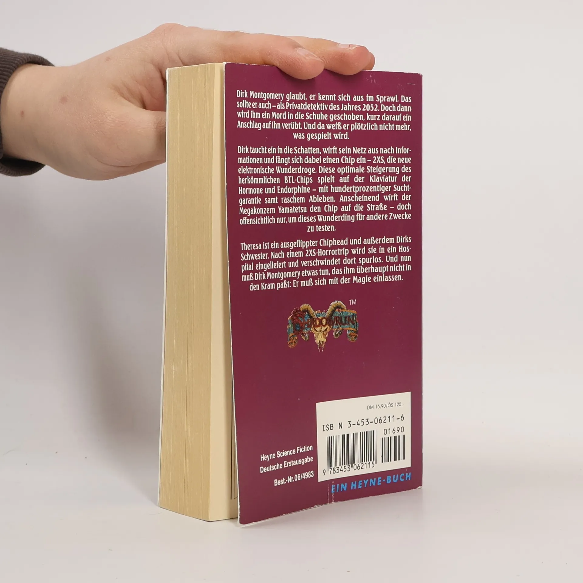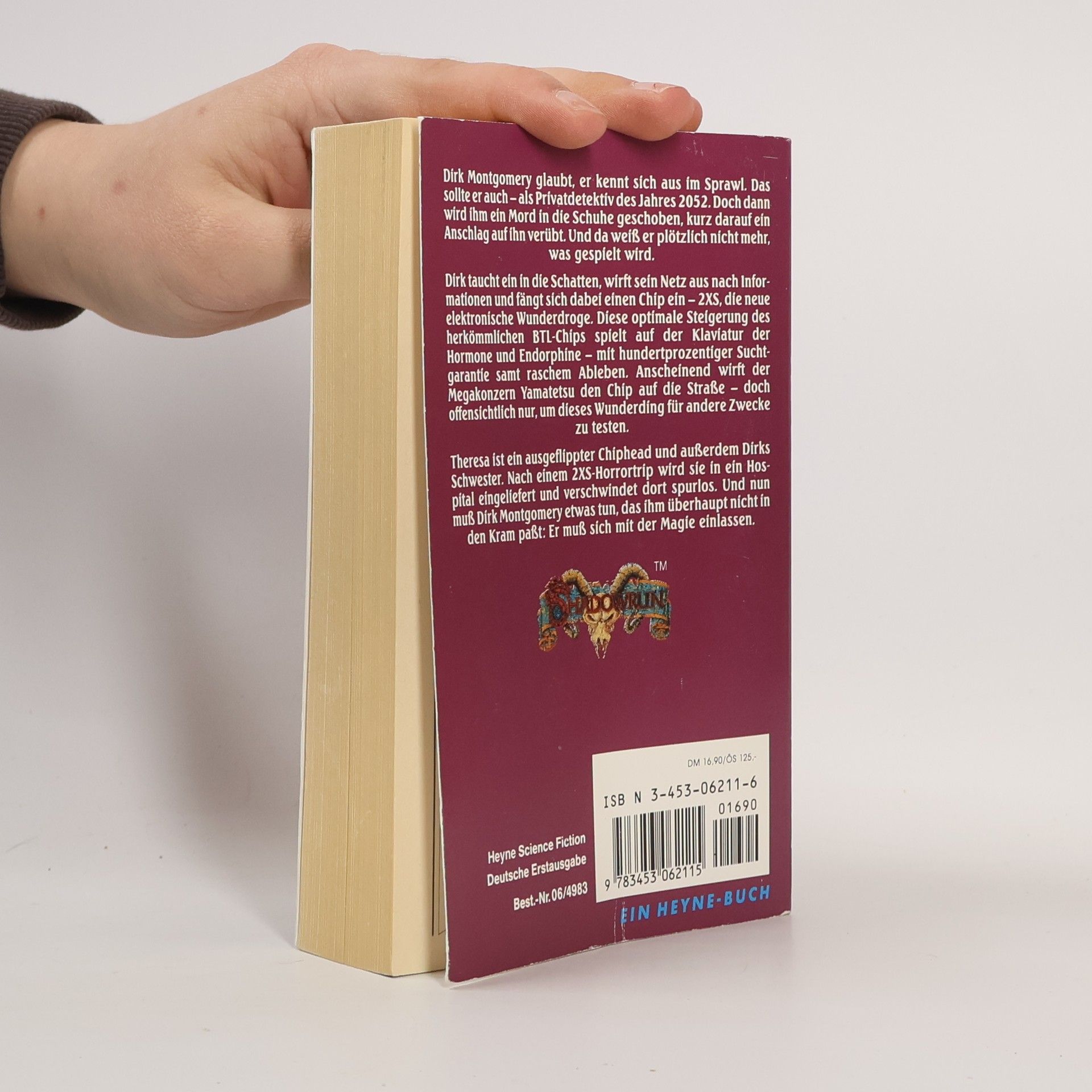 Dirk Montgomery glaubt, er kennt sich aus im Sprawl. Das sollte er auch - als Privatdetektiv des Jahres 2052. Doch dann wird ihm ein Mord in die Schuhe geschoben, kurz darauf ein Anschlag auf ihn verübt. Und da weiß er plötzlich nicht mehr, was gespielt wird.Dirk taucht ein in die Schatten, wirft sein Netz aus nach Informationen und fängt sich dabei einen Chip ein – 2XS, die neue elektronische Wunderdroge. Diese optimale Steigerung des herkömmlichen BTL Chips spielt auf der Klaviatur der Hormone und Endorphine - mit hundertprozentiger Suchtgarantie samt raschem Ableben. Anscheinend wirft der Megakonzern Yamatetsu den Chip auf die Straße – doch offensichtlich nur, um dieses Wunderding für andere Zwecke zu testen.Theresa ist ein ausgeflippter Chiphead und außerdem Dirks Schwester. Nach einem 2XS-Horrortrip wird sie in ein Hospital eingeliefert und verschwindet dort spurlos. Und nun muß Dirk Montgomery etwas tun, das ihm überhaupt nicht in den Kram paßt: Er muß sich mit der Magie einlassen.