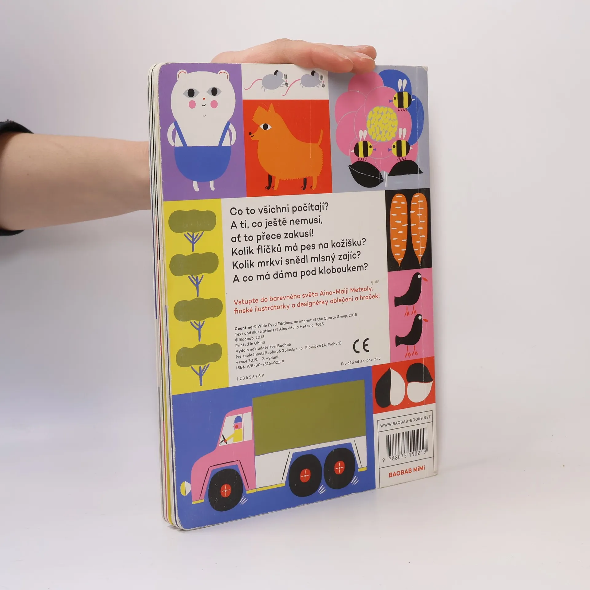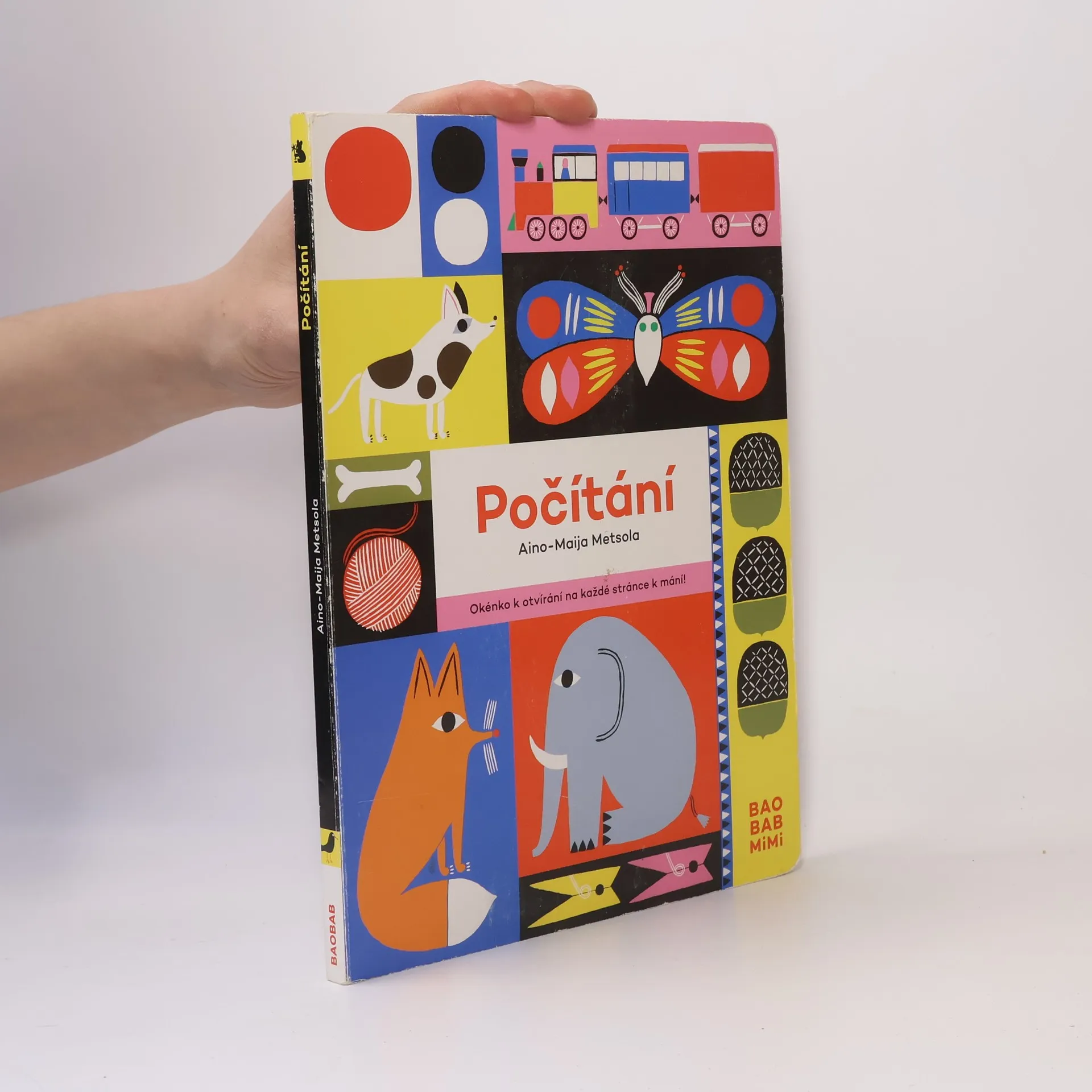 Okénko k otvírání na každé stránce k mání! Počítání pro nejmenší jako hra a objevování. Počty od jedné do deseti, pojmenování věcí a hledání souvislostí nabízí kniha finské výtvarnice Aino-Maiji Metsoly. Zábavu při čtení mohou zaručit vyklápěcí okna s hádankami na každé straně, výrazné ilustrace i proměna témat na každé dvoustraně (květiny a zahrada, šatník, dopravní prostředky, psi a kočky, africká zvířata atd.).