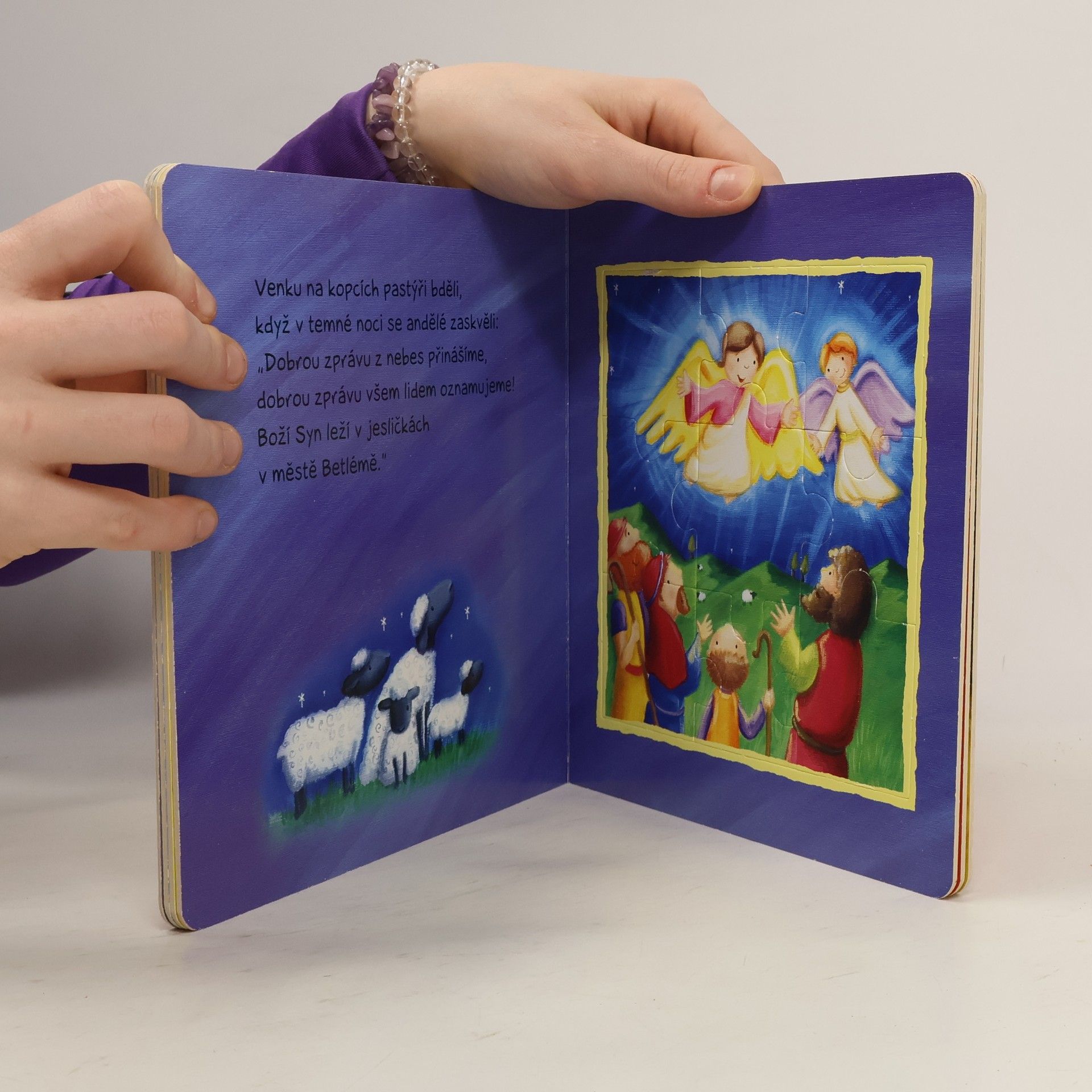 Vánoční příběh převyprávěný v šesti scénách s jednoduchými skládačkami, jejichž robustní díly zabaví dětské prstíky.