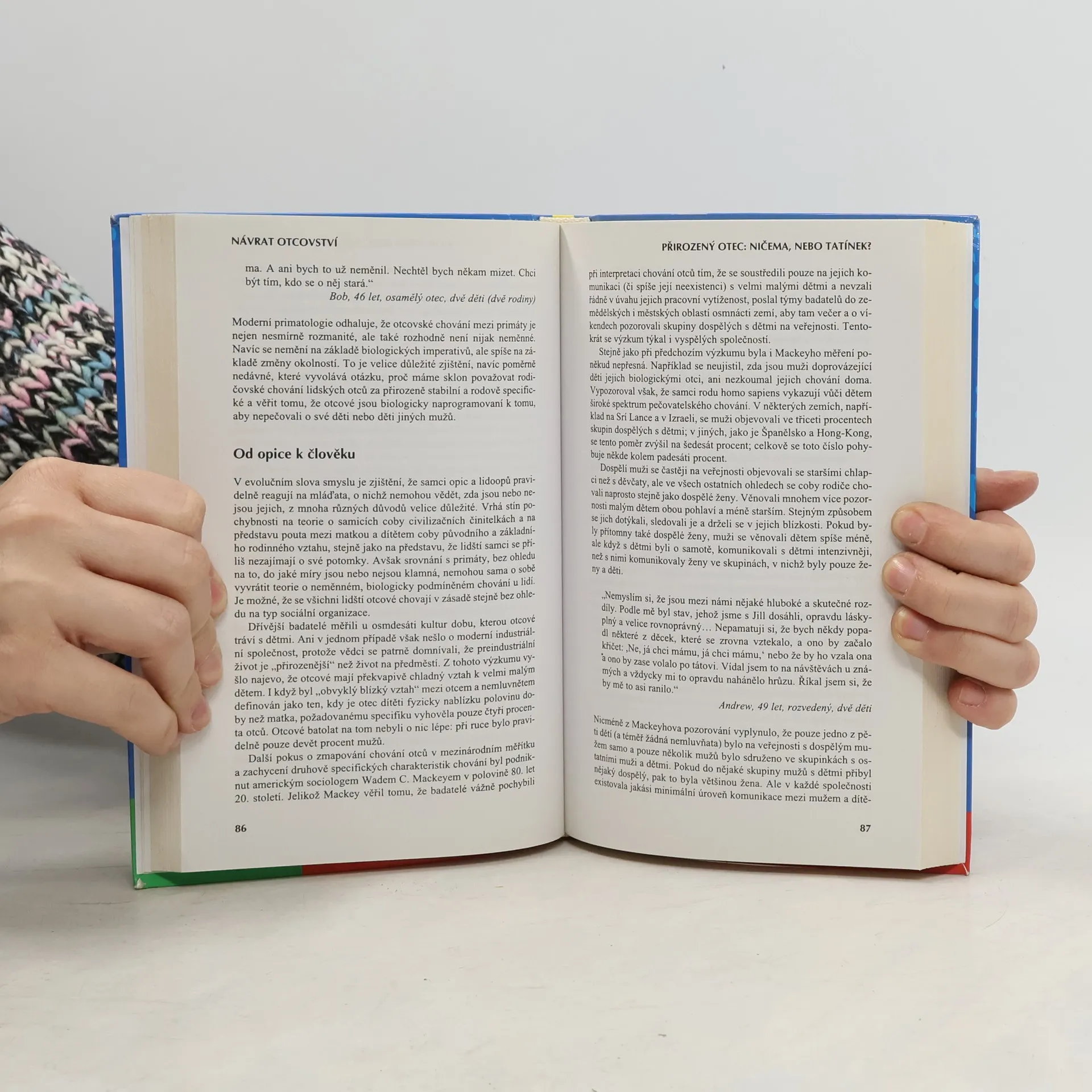Takto kniha s citem, avšak radikálně zpochybňuje tradiční představy o mužích jako otcích a odhaluje, že rodičovské chování je spíše než biologicky podmíněno sociálně. Silné vrozené rodičovské instinkty mužů jsou často sabotovány kulturními a sociálními očekáváními. Tento poučný, vzrušující a fascinující průzkum čerpá z mužských deníků – dávných i současných – stejně jako z širokého spektra výzkumů a rozhovorů s otci ze všech společenských skupin, aby ukázal, co znamenalo a co znamená být otcem. Ukazuje, jak velké úsilí musí často dnešní otcové vynakládat, aby se jim podařilo skloubit protichůdné požadavky plynoucí z rodiny a ze zaměstnání a navzdory všemu si udržet zdravý vztah se svými dětmi, často po odloučení a rozvodu.(v kartonové vazbě - pevnější brož).