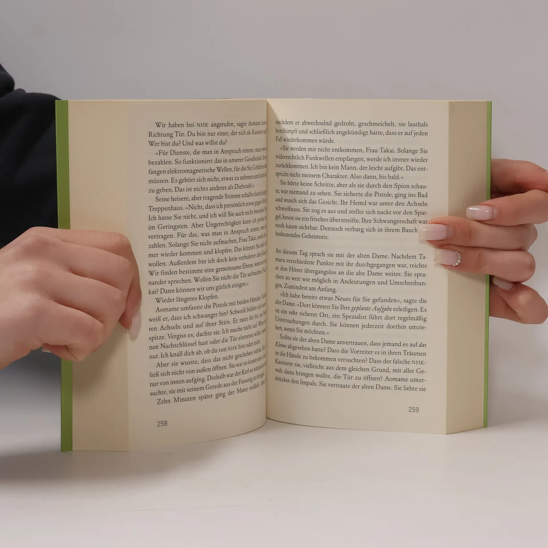 Als Tengo seinen komatösen Vater im Krankenhaus besuchen will, findet er in dessen Krankenbett eine »Puppe aus Luft« vor, die ein Abbild Aomames als junges Mädchen in sich birgt. Er greift nach ihrer Hand, und eine unsichtbare Verbindung entsteht. Fortan wartet Tengo darauf, der Puppe nochmals zu begegnen, doch vergebens. War das Signal nicht stark genug, um die zwischen Leben und Tod schwankende Aomame zu retten?