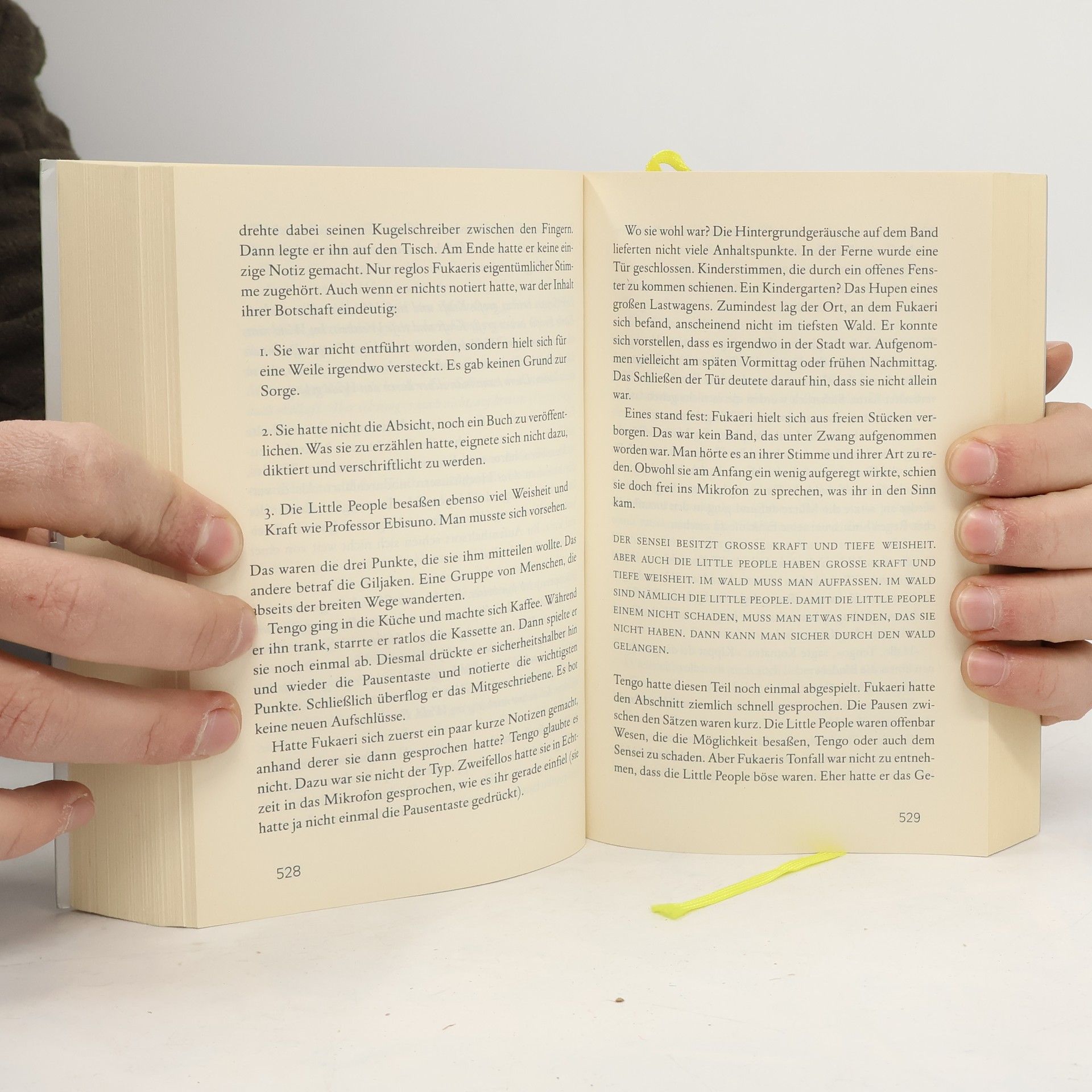 1984. Aomame hat zwei verschieden große Ohren. Beim Rendezvous mit einem reichen Ölhändler zückt sie eine Nadel und ersticht ihn – ein Auftragsmord, um altes Unrecht zu sühnen. Tengo ist Hobby-Schriftsteller. Er soll einen Roman der exzentrischen 17-jährigen Fukaeri überarbeiten, damit sie einen Literaturpreis bekommt.