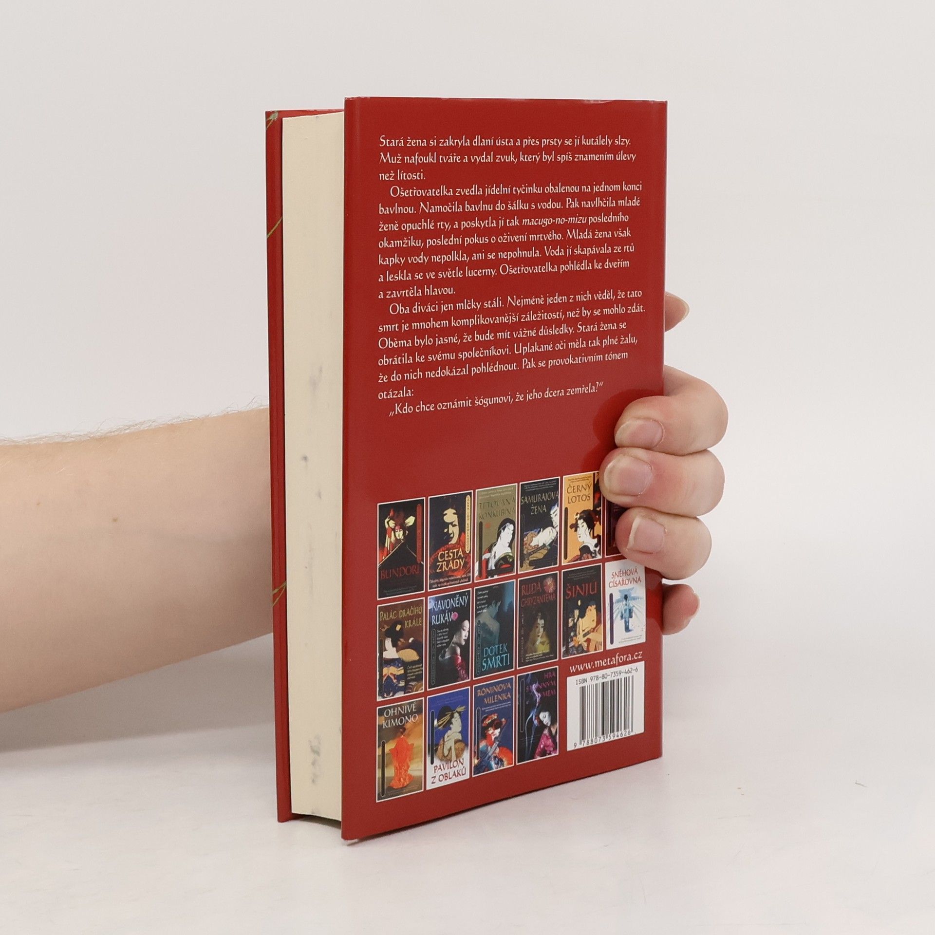 Nešťastné náhody, nebo vraždy? Detektiv, nebo pachatel? Sano Ičiró má před sebou nejtěžší případ… Další pokračování oblíbené série detektivek se starého Japonska. Šógunova dcera Curuhime umírá s tváří zohavenou neštovicemi. Brzy se však objeví pochybnosti. Byla její smrt přirozená? Šógun se ale víc zajímá o svého syna a dědice, mladíka jménem Jošisato, o jehož existenci donedávna neměl tušení. A jak by také mohl, když jde o další úskok známého intrikána Janagisawy. Sano Ičiró, jeho dávný nepřítel, tvrdí, že skutečným mladíkovým otcem je právě Janagisawa.. Události však náhle naberou nečekaný spád. Hoří! Rezidence šógunova následníka Jošisata lehne popelem. Na spáleništi zůstanou jen k nepoznání ohořelá těla. Z Jošisatovy vraždy je však vzápětí obviněn Sano. A odsouzen k smrti s celou rodinou, i se svou ženou Reiko, která právě čeká třetí dítě. Zdá se, že jejich osud je zpečetěn…
