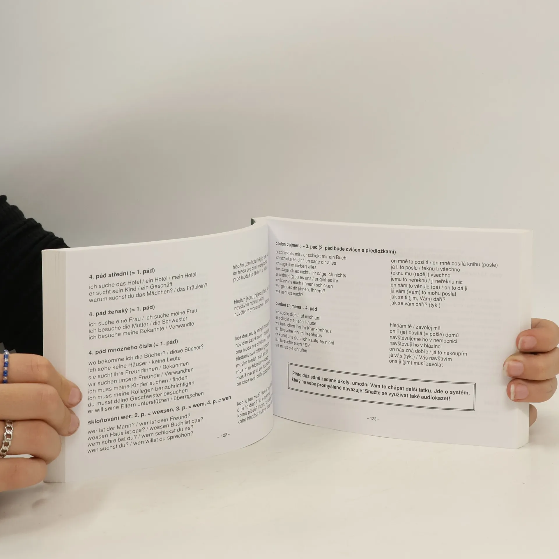 Cvičení N I/2 obsahuje dvojice německých a českých vět volených tak, aby jejich postupnou modifikací docházelo k budování dynamických stereotypů neboli „gramatických brázd“. České překlady jsou voleny tak, aby napomáhaly vytvářet správně německou větu, nejsou tedy vynechávány podměty jako v češtině, ani nejsou voleny překladově správnější české výrazy.