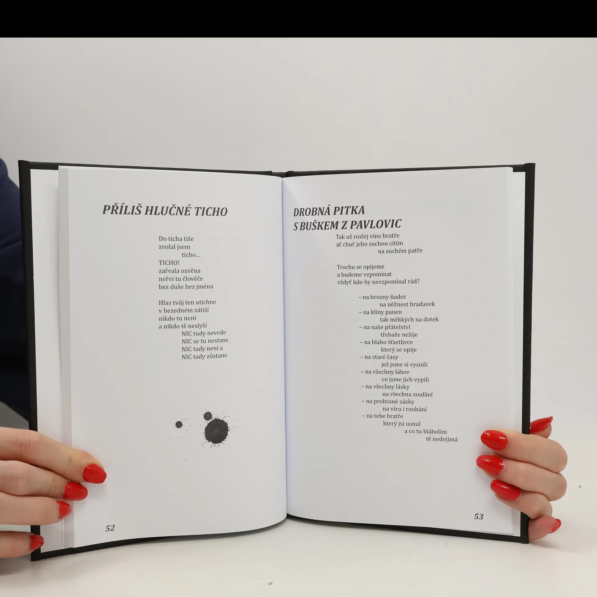 Básnická sbírka Bílá na černé – Rub a líc radostí života je poetickým ohlédnutím za bouřlivým mládím autora, v němž odkrývá skryté vrstvy vlastní duše. Otázky týkající se zrození a smrti, lásky, nejistoty, touhy, radosti, smutku či naděje jsou vyřčeny mnohdy syrovější formoua namísto odpovědí provokují čtenáře, aby se také on sám zamyslel nad světlými i stinnými stránkami vlastního života.