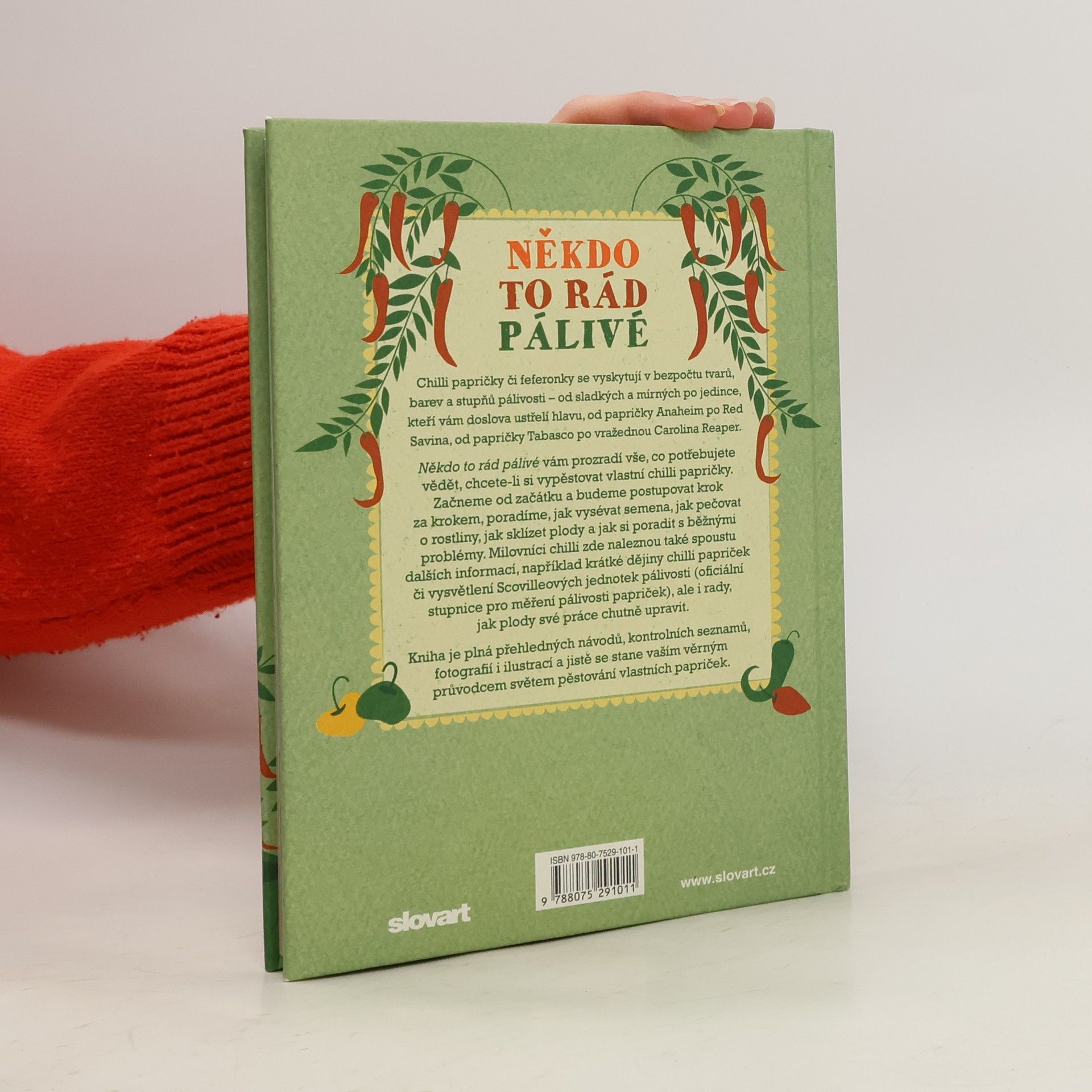 Úplný průvodce pěstováním, sklízením a uchováváním chilli papriček Tato kniha je praktickou příručkou pro všechny milovníky pálivých pochoutek. Prozradí zájemcům vše, co potřebují vědět, chtějí-li si vypěstovat vlastní chilli papričky. Začíná od úplných začátků a postupuje dál krok za krokem. Poradí, jak vysévat semena, jak pečovat o rostliny, jak sklízet plody a jak si poradit s běžnými problémy. Začátečníkům pomohou v orientaci i přehledné návody, kontrolní seznamy, fotografie a ilustrace. Milovníci chilli zde najdou i řadu dalších informací, například krátké dějiny chilli a vysvětlení Scovilleových jednotek pálivosti (oficiální stupnice pro měření pálivosti papriček). Samozřejmě nemohou chybět ani rady, jak plody své práce chutně upravit.