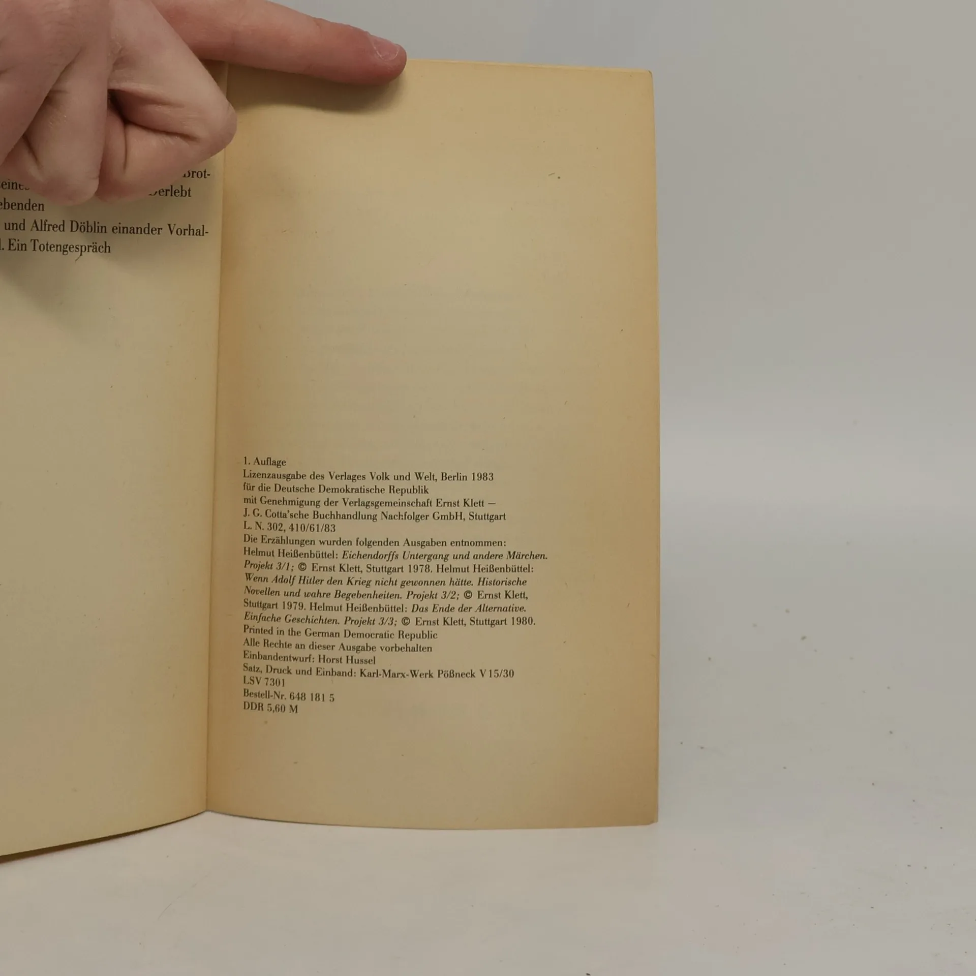Franz-Ottokar Mürbekapsels Glück und ein Ende, Helmut Heissenbüttel