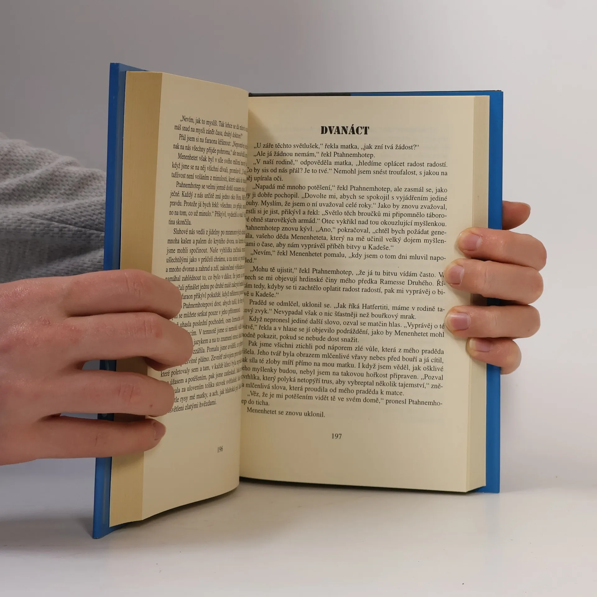 Kniha nás zavede do 2. tisíciletí př. n. l. starověkého Egypta. Ve dvou časových rovinách v ní sledujeme vyprávění starce Menenheteta, který prožil čtyři životy a důvěrně poznal zejména jednoho z nejvýznamnějších egyptských faraonů Ramesse II. Menenhetetův příběh otvírá pohled nejen na historické události tehdejší doby, jako např. slavnou bitvu u Kadeše, ale jeho prostřednictvím pronikneme i do složitého světa všudypřítomných egyptských bohů či do tehdejších sexuálních zvyklostí. Kniha je tak nejen prostým vyprávěním o osudech jednoho hrdiny, ale stává se barvitým, pečlivě vykresleným obrazem každodenního života a myšlení starých Egypťanů.