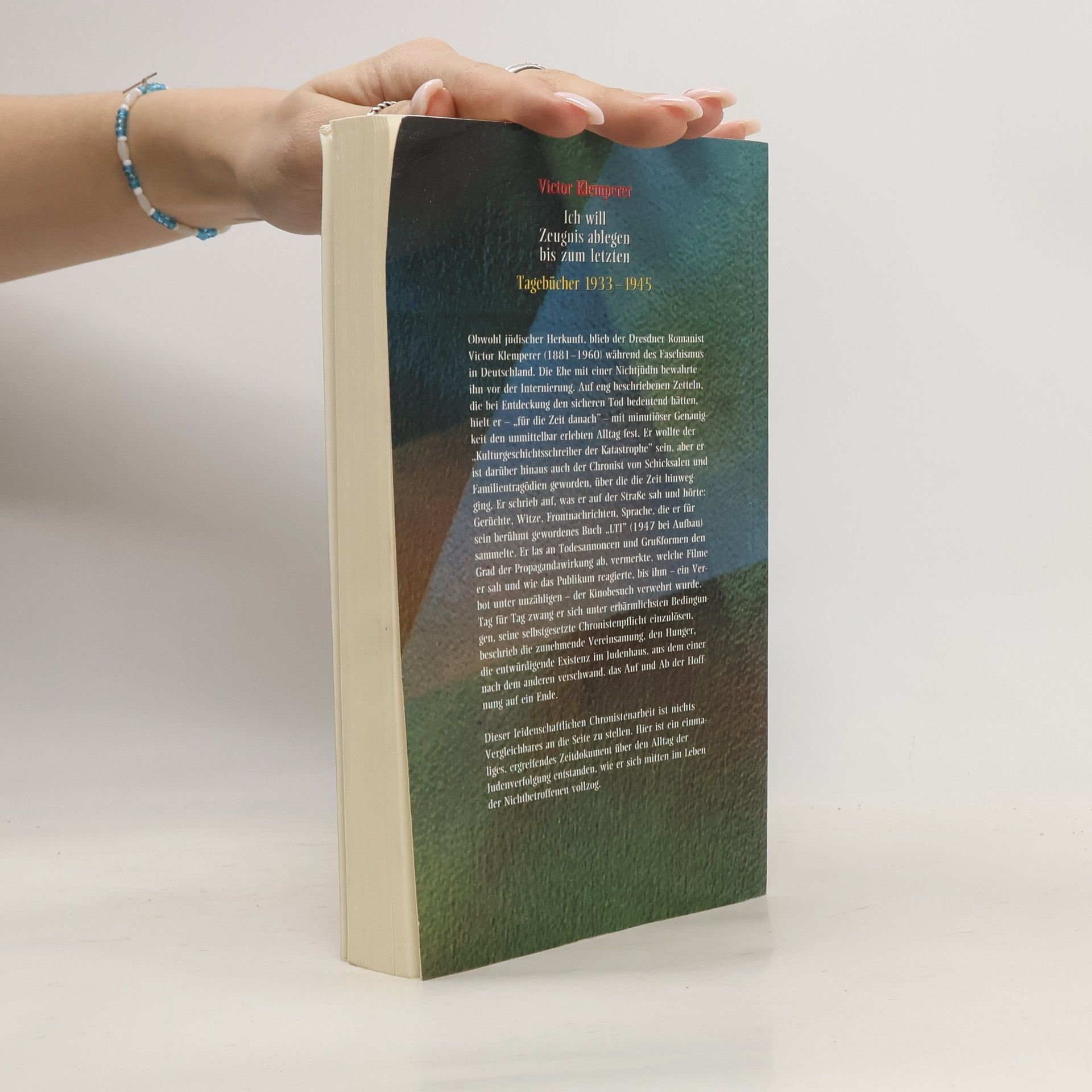 Obwohl jüdischer Herkunft, blieb Victor Klemperer während des Faschismus in Deutschland. Die Ehe mit einer Nichtjüdin bewahrte ihn vor der Deportation. Als er, der Romanist von europäischem Rang, sein Lehramt an der Technischen Hochschule in Dresden verlor, die zunehmenden Repressalien seine wissenschaftliche Arbeit verhinderten, wurde ihm das Tagebuch zur "Balancierstange", ohne die er abgestürzt wäre. Mit minutiöser Genauigkeit hielt er fest, was er erlebte, was er sah, was ihm zugetragen wurde. "Beobachten, notieren, studieren" - das war die ständige Forderung, die er an sich selbst stellte. Er wollte der "Kulturgeschichtsschreiber der Katastrophe" sein, aber er ist darüber hinaus auch der Chronist von Schicksalen und Familientragödien geworden, über die die Zeit hinwegging. Tag für Tag löste er seine selbstgesetzte Zeugnispflicht ein, trotz ständiger Todesgefahr, Zwangsarbeit und entwürdigender Existenz im "Judenhaus". Er notierte Gerüchte, Witze, Nachrichten und immer wieder die Sprache des Dritten Reiches, die er für sein berühmt gewordenes Buch "LTI" sammelte. Aus dieser leidenschaftlichen Chronistenarbeit wurde ein einmaliges, ungewöhnliches Zeugnis über den Alltag der Judenverfolgung: ein Zeitdokument von außerordentlicher Faszination.