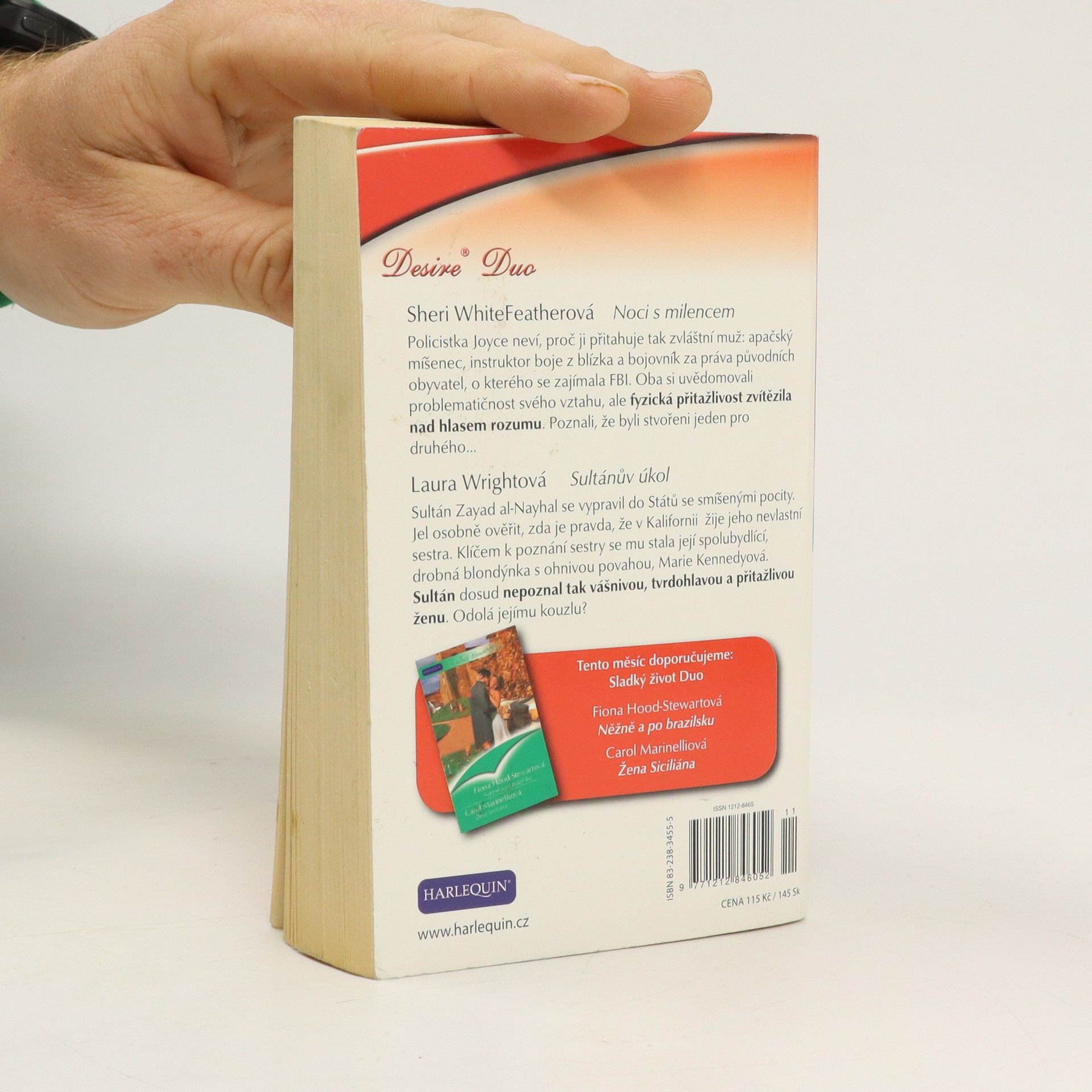 NOCI S MILENCEM (SHERI WHITEFEATHER) Policistka Joyce neví, proč ji přitahuje tak zvláštní muž: apačský míšenec, instruktor boje z blízka a bojovník za práva původních obyvatel, o kterého se zajímala FBI. Oba si uvědomovali problematičnost jejich vztahu, ale fyzická přitažlivost zvítězila nad hlasem rozumu. Poznali, že byli stvořeni jeden pro druhého… SULTÁNŮV ÚKOL (LAURA WRIGHT) Sultán Zayad al-Nayhal se vypravil do Států se smíšenými pocity. Jel osobně ověřit, zda je pravda, že v Kalifornii žije jeho nevlastní sestra. Klíčem k poznání sestry se mu stala její spolubydlící, drobná blondýnka s ohnivou povahou, Marie Kennedyová. Sultán dosud nepoznal tak vášnivou, tvrdohlavou a přitažlivou ženu. Odolá jejímu kouzlu?