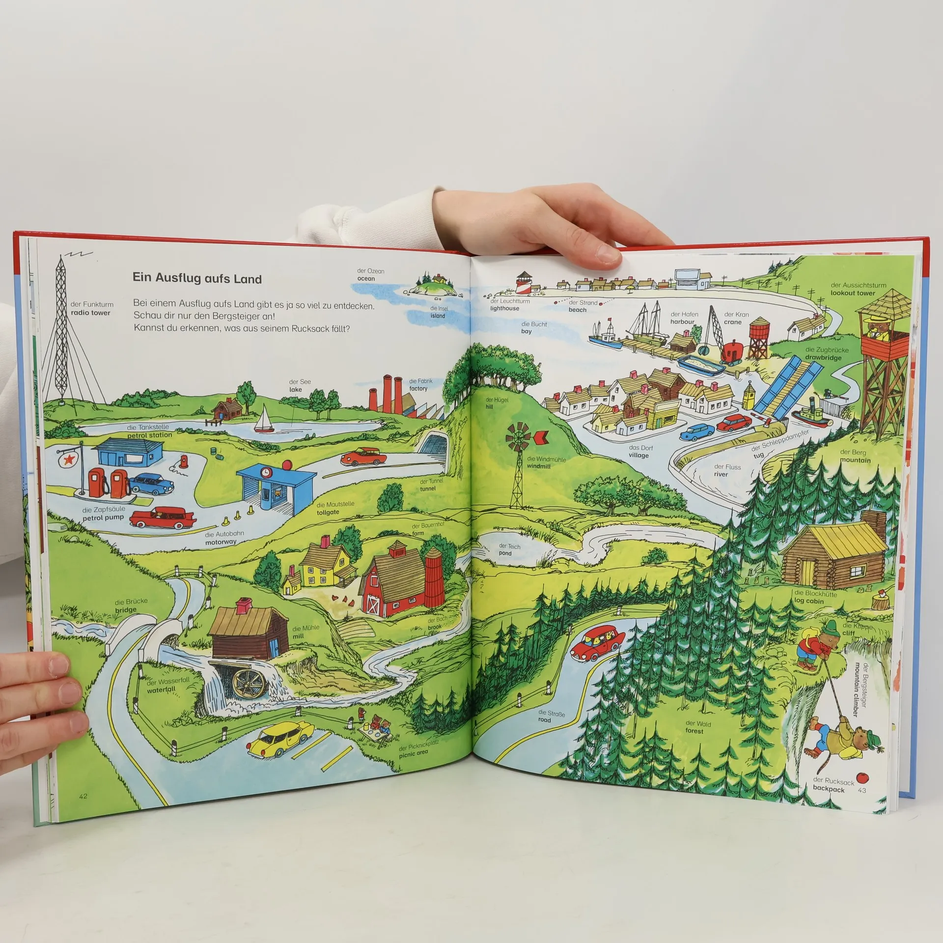 A pictorial word book in German and English of words grouped under common activities as bedtime or basic concepts as weather.