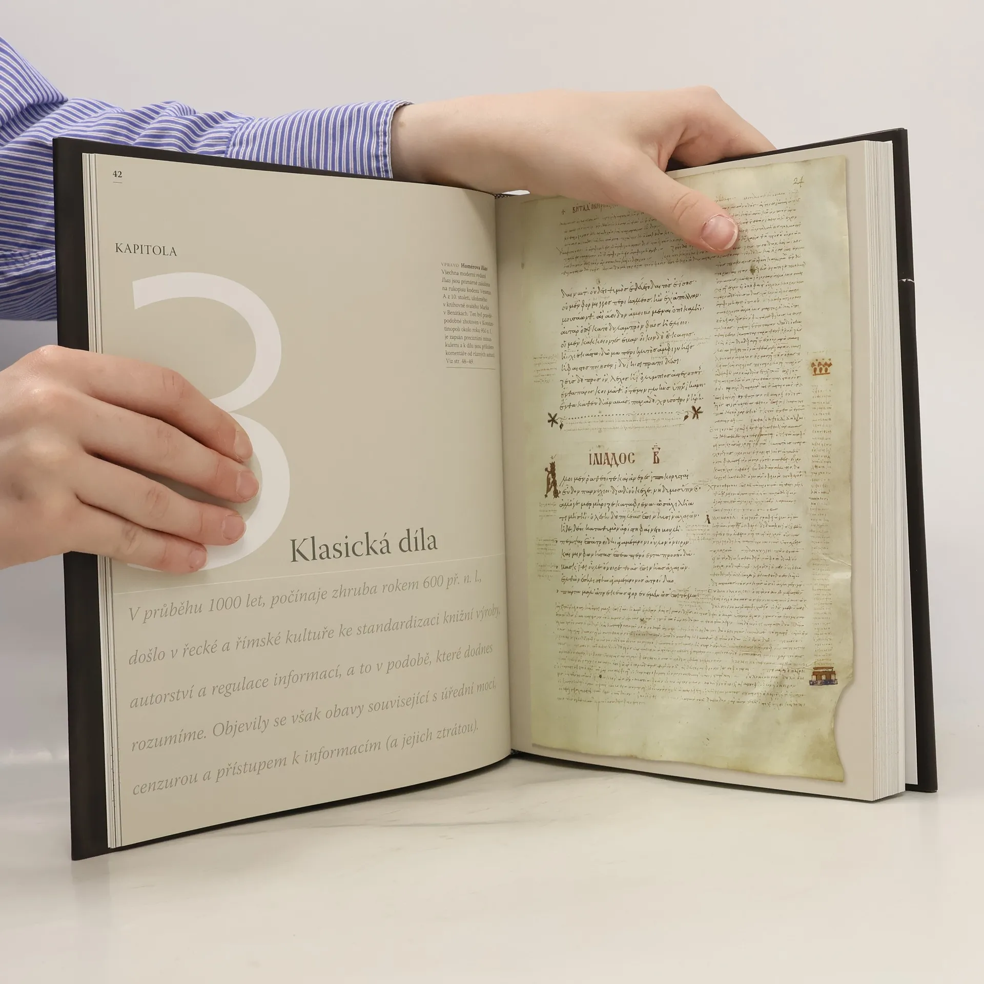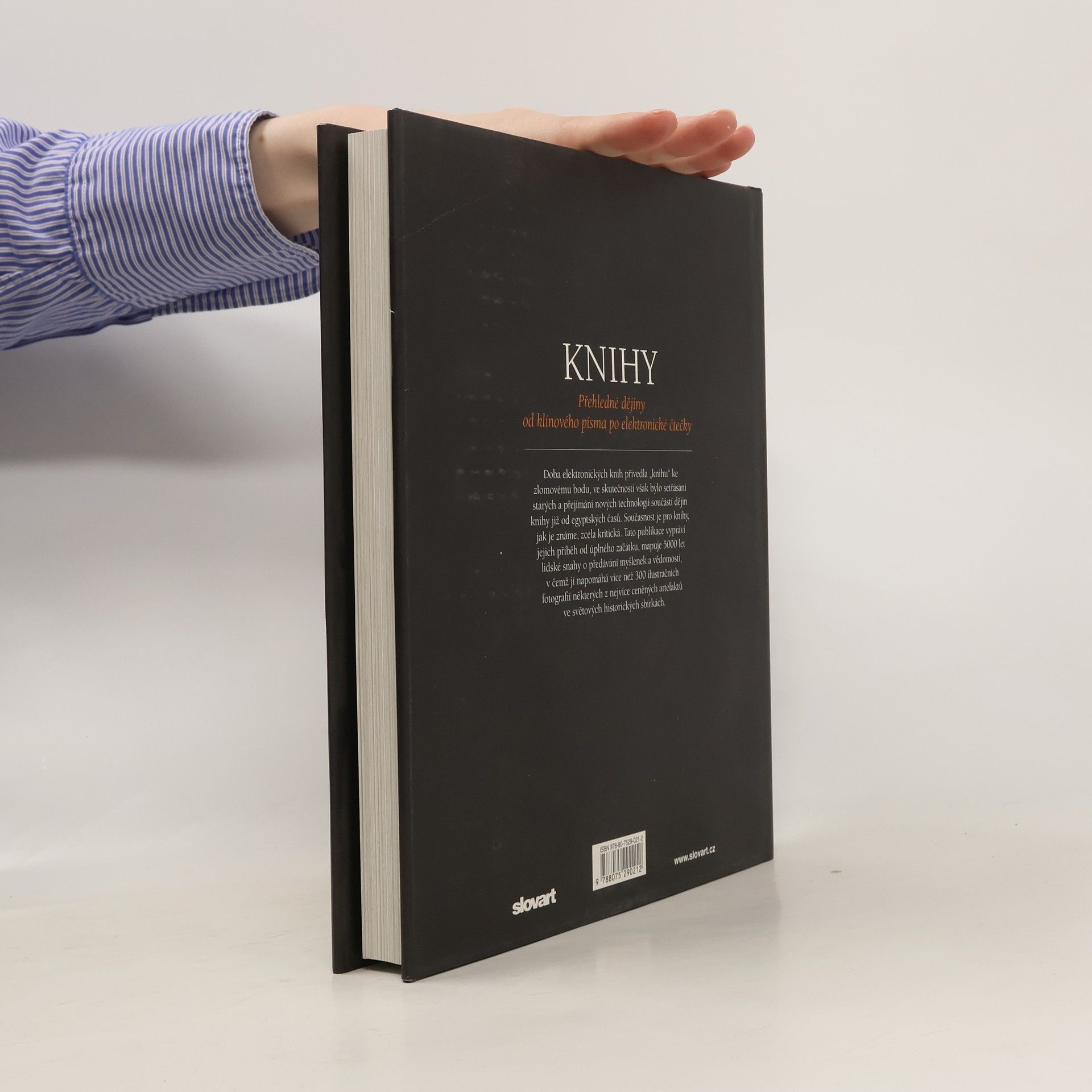 Doba elektronických knih přivedla „knihu" ke zlomovému bodu, ve skutečnosti však bylo setřásání starých a přejímání nových technologií součástí dějin knihy již od egyptských časů. Současnost je pro knihy, jak je známe, zcela kritická a tato publikace vypráví jejich příběh od úplného začátku. Knihy mapují 5000 let lidské snahy o předávání myšlenek a vědomostí, v čemž jí napomáhá více než 300 ilustračních fotografií některých z nejvíce ceněných artefaktů ve světových historických sbírkách.
