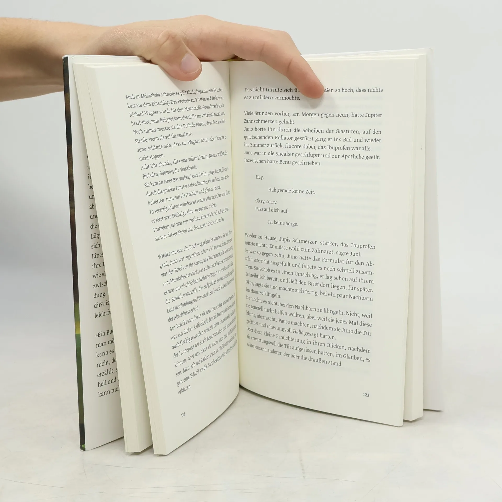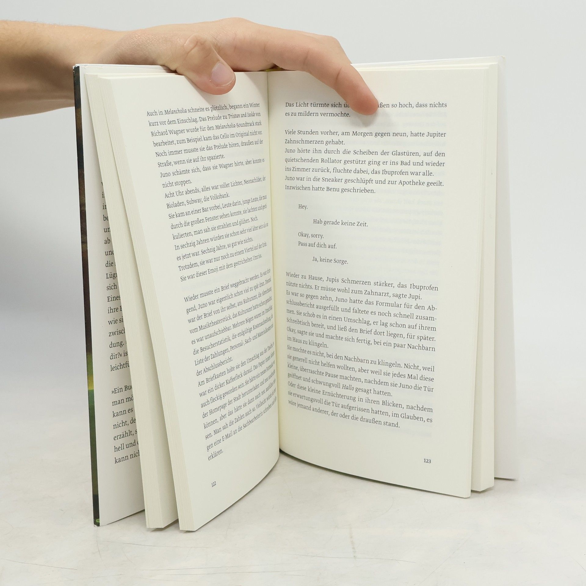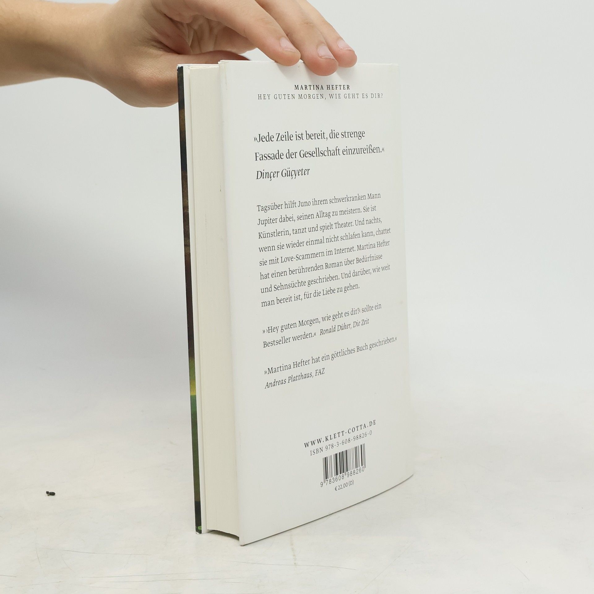 Tagsüber hilft Juno ihrem schwerkranken Mann Jupiter dabei, seinen Alltag zu meistern. Außerdem ist sie Künstlerin, tanzt und spielt Theater. Und nachts, wenn sie wieder einmal nicht schlafen kann, chattet sie mit Love-Scammern im Internet. Martina Hefter hat einen berührenden Roman über Bedürfnisse und Sehnsüchte im Leben geschrieben. Und darüber, wie weit man bereit ist, für die Liebe zu gehen.Juno schreibt online mit Männern, die Frauen online ihre Liebe gestehen und so versuchen, sie um ihr Geld zu bringen. Doch statt darauf hereinzufallen, werden genau diese Männer zu einer Form von Freiheit für Juno. In den Gesprächen kann sie sein, wer sie will und sagen, was sie will – und das vermeintlich ohne Konsequenzen. Ganz im Gegensatz zu ihrem sonstigen Leben, in dem sie immer unterwegs, immer besorgt um Jupiter, immer beschäftigt und eingebunden ist. Also flüchtet Juno ab und zu vor ihrem Alltag ins Internet und spielt dort Spielchen mit Männern, die sie anlügen. Sie selbst wird zur Lügnerin. Aber ist es nicht so, dass man sich beim Lügen zuallererst selbst belügt? Eines Tages trifft Juno auf Benu, der ihre Behauptungen ebenso durchschaut wie sie seine. Und trotz der Entfernung zwischen ihnen entsteht eine Verbindung. »Hey guten Morgen, wie geht es dir« ist ein tiefgehender Roman, aber so leichtfüßig wie eine Komödie.