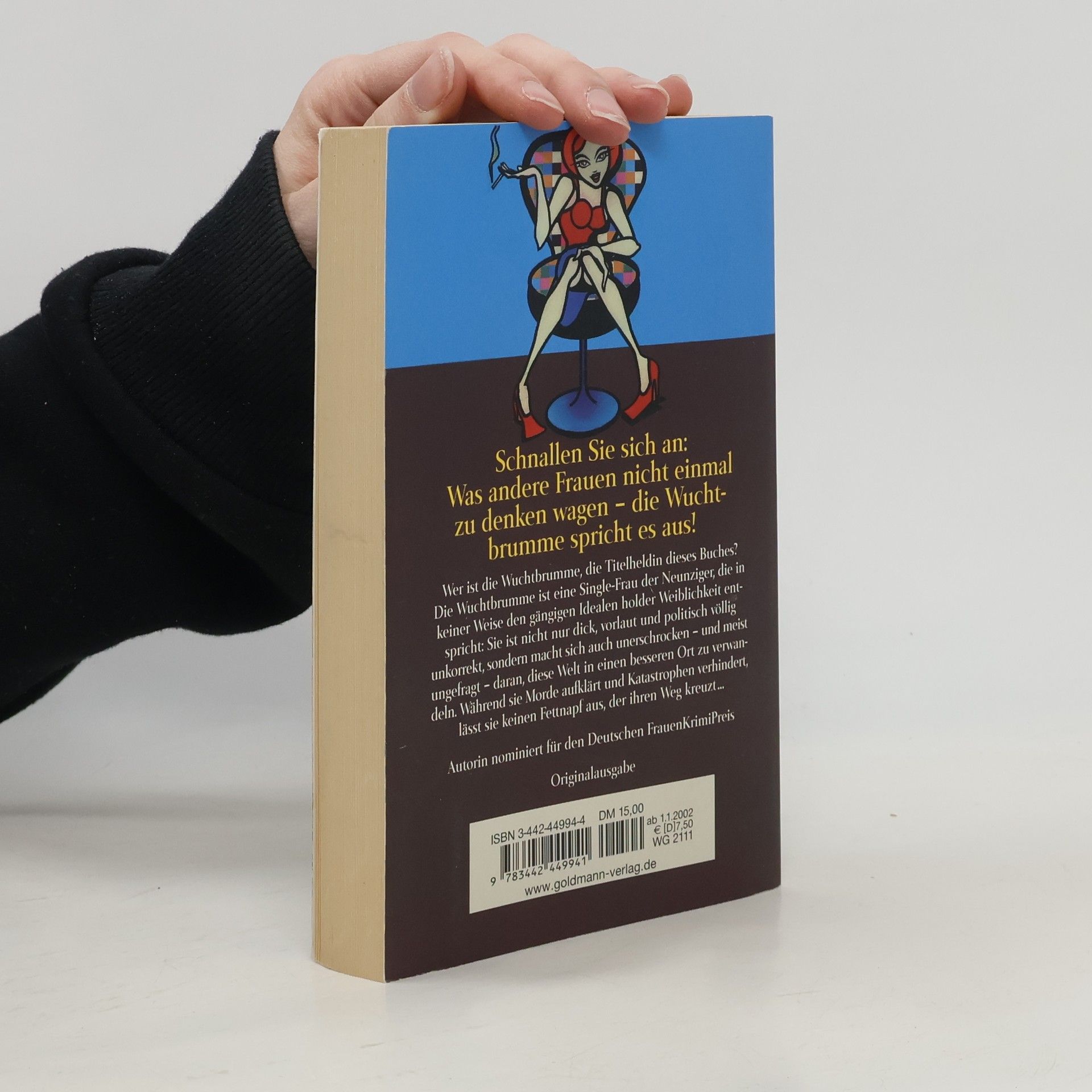 Wer ist die Wuchtbrumme, die Titelheldin dieses Buches? Die Wuchtbrumme ist eine Single-Frau der Neunziger, ein toughes Alt-Girlie, das den gängigen Idealen holder Weiblichkeit in keiner Weise entspricht: Sie ist dick, vorlaut, und politisch unkorrekt, letzteres vor allem gegenüber Blondinen und Männern jedweder Couleur ("Wahre Gleichberechtigung herrscht erst an dem Tag, an dem die Slipeinlage für den Mann auf den Markt kommt!"). Von echten oder auch nur eingebildeten Katastrophen lässt sie sich nicht unterkriegen, sondern nimmt ihr Leben tatkräftig selbst in die Hand und lässt dabei keinen Fettnapf aus. Unerschrocken und meist ungefragt macht sie sich daran, diese Welt in einen besseren Ort zu verwandeln. Kurz gesagt, die Wuchtbrumme steckt wohl in jeder Frau, doch spricht sie ohne mit der Wimper zu zucken aus, was andere nicht einmal zu denken wagen.