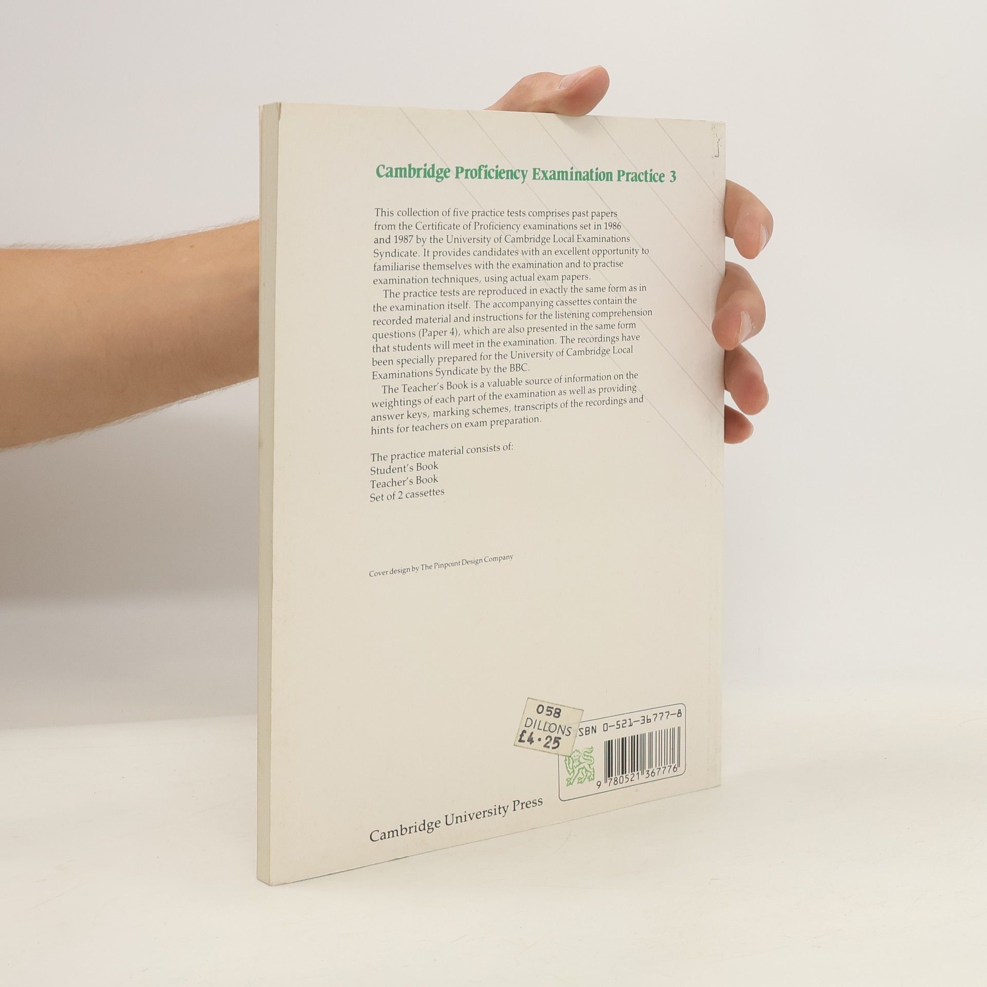 Cambridge Proficiency Examination Practice 3 contains five complete sets of authentic past papers from the University of Cambridge Local Examinations Syndicate issued in recent years for the Cambridge Proficiency Examination. The practice tests are reproduced in exactly the same form as in the examination itself. The accompanying cassettes contain the recorded material and instructions for the listening comprehension questions, which are also presented in the same form that students will meet in the examination. The accompanying Teacher's Book contains a full introduction to the exam, including notes on CPE examiners' marking criteria - especially in relation to the Writing paper - plus the tapescript and keys to each test.