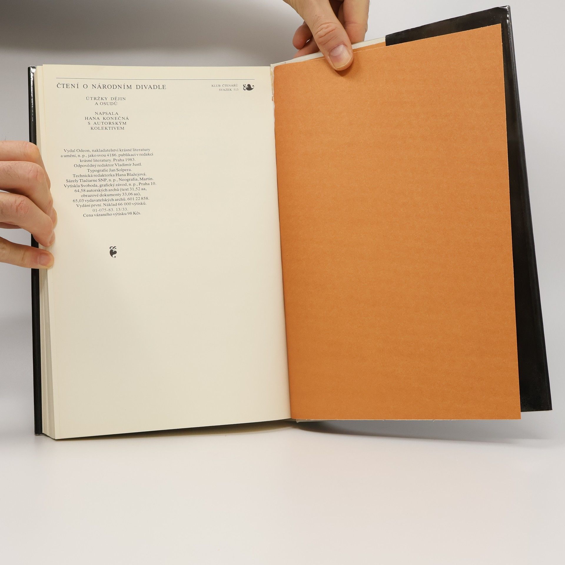 Útržky dějin a osudů. Hana Konečná [i.e. Jan Kopecký] s autorským kolektivem. Skutečným autorem je Jan Kopecký, který v době normalizace nesměl publikovat, své jméno mu pro tuto publikaci propůjčila Hana Konečná (viz. Databáze Národní knihovny ČR a Informační systém abART - full verze)Spoluatoři: Ljuba Klosová (kapitola 11), Jaromír Paclt, Věra Ptáčková (kapitola 27), Ivana Vadlejchová, ilustrace, portréty, faksimile - Jaroslav Krejčí, kalendárium - Jindřich Černý. Obsahuje bibliografii, bibliografické odkazy a rejstřík Formát 340 x 230 mm