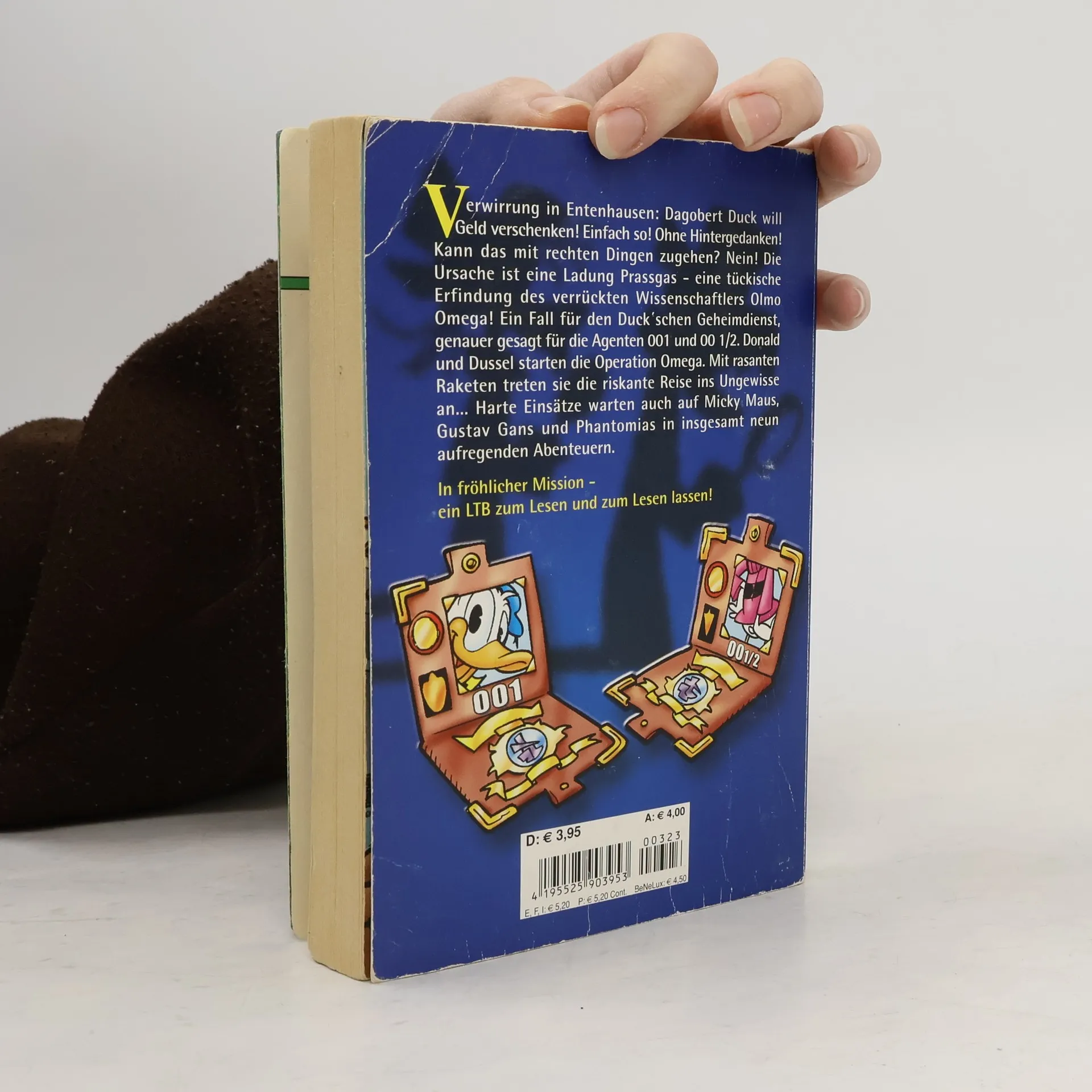 Verwirrung in Entenhausen: Dagobert Duck will Geld verschenken! Einfach so! Ohne Hintergedanken! Kann das mit rechten Dingen zugehen?Nein! Die Ursache ist eine Ladung Prassgas - eine tückische Erfindung des verrückten Wissenschaftlers Olmo Omega! Ein Fall für den Duck'schen Geheimdienst, genauer gesagt für die Agenten 001 und 00 1/2. Donald und Dussel starten die Operation Omega. Mit rasanten Raketen treten sie die Reise ins Ungewisse an... Harte Einsätze warten auch auf Micky Maus, Gustav Gans und Phantomias in insgesamt neun aufregenden Abenteuern.In fröhlicher Mission - ein LTB zum Lesen und zum Lesen lassen!