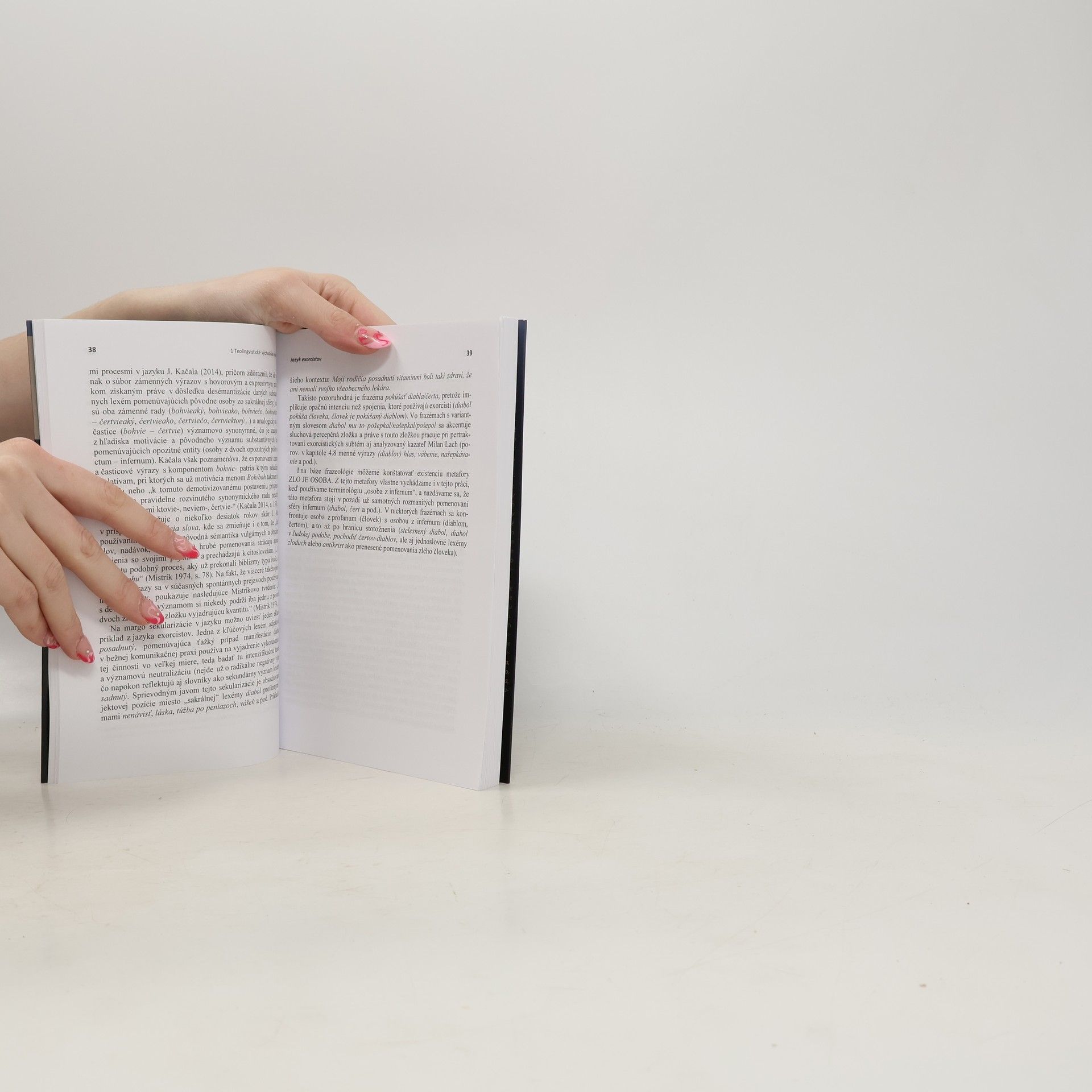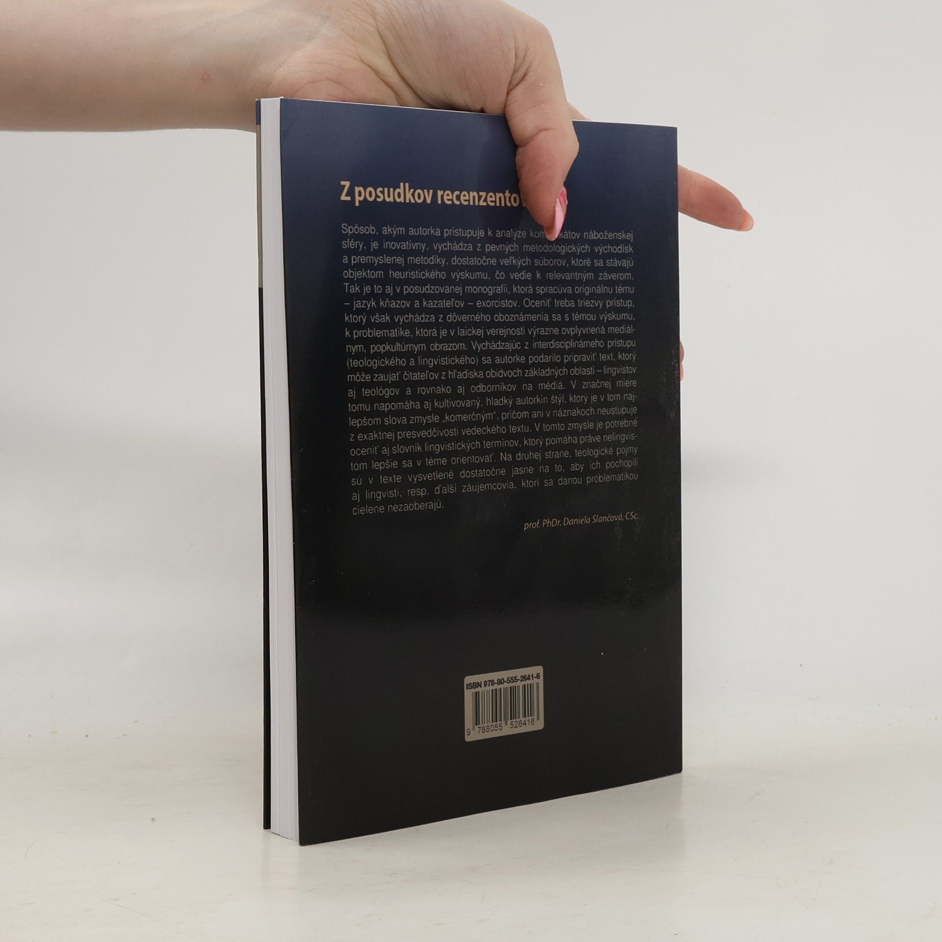 Fenomén exorcizmov a s ním súvisiace postavy exorcistov sa v súčasnosti dostávajú do výraznej pozornosti nielen vo svetovom kontexte, ale už aj v kontexte náboženskej (komunikačnej) sféry na Slovensku. V súvislosti s exponovanými fenoménmi existuje množstvo rôznych prístupov, od teologických a religionistických cez antropologické a sociologické až po psychologické. Čo však v celom bohatom diapazóne prístupov chýba tak u nás, ako i vo svetovom kontexte, je pohľad lingvistický. Hlavným zámerom publikácie je predstaviť v súčanosti značne populárny, no i kontroverzný fenomén exorcizmov a exorcistov ako jeden z pozoruhodných aj aktuálnych výskumných problémov lingvistiky. Naše (pilotné) lingvistické uvažovanie je zamerané na fenomén eorcizmu v kresťanskokatolíckom prostredí a odvíjame ho predovšetkým od prístupu teológie. Predpokladom nášho uvažovania je pritom afirmatívne stanovisko k sledovanému fenoménu. Na jazyk exorcistov nazeráme vo svetle dvoch metodologických konceptov - teórie komunikačného registra a konceptu individuálneho personálneho štýlu. V centre našej výskumnej pozornosti stoja hovorené monologické komunikáty deviatich najznámejších a mediálne najexponovanejších slovenských kazateľov a exorcistov.
