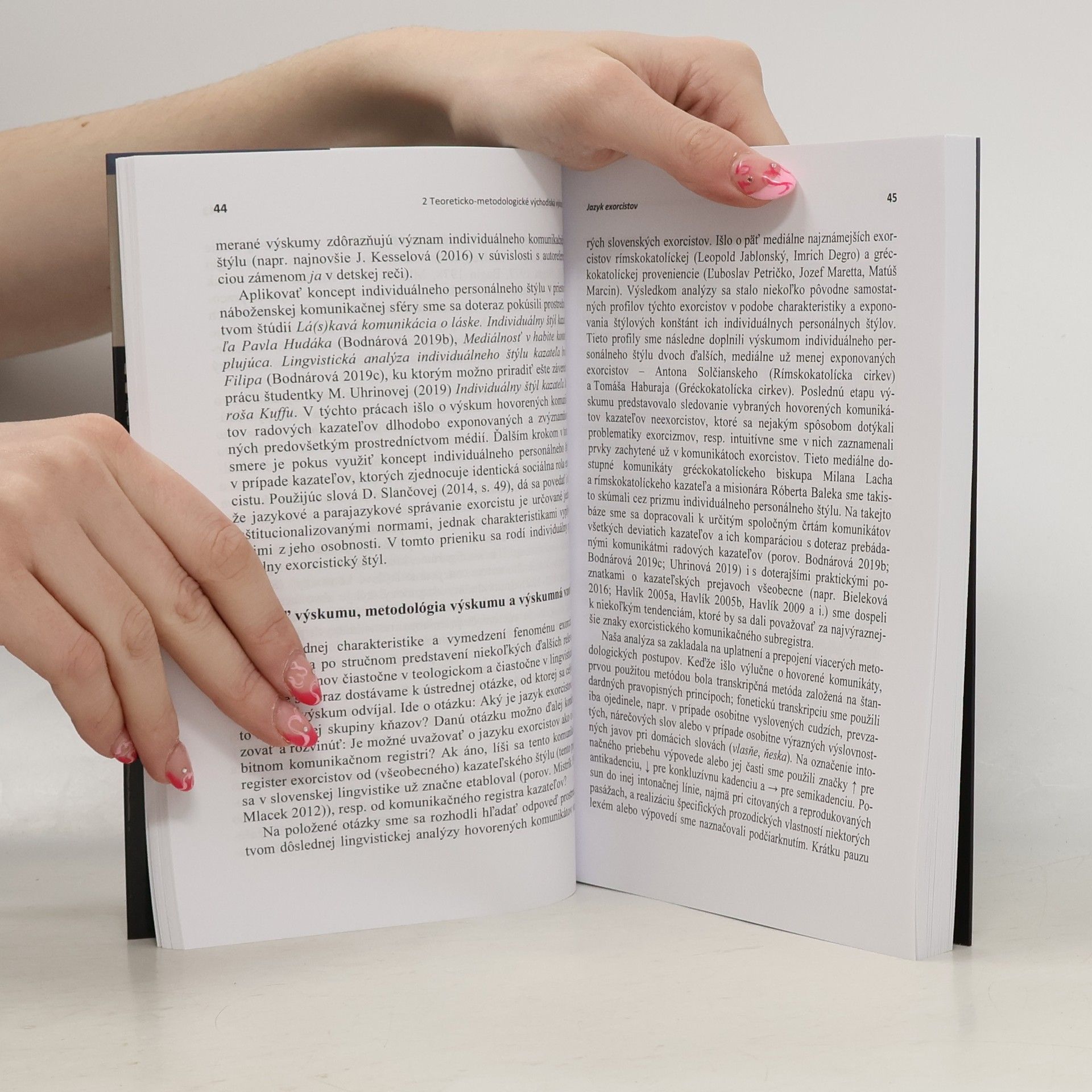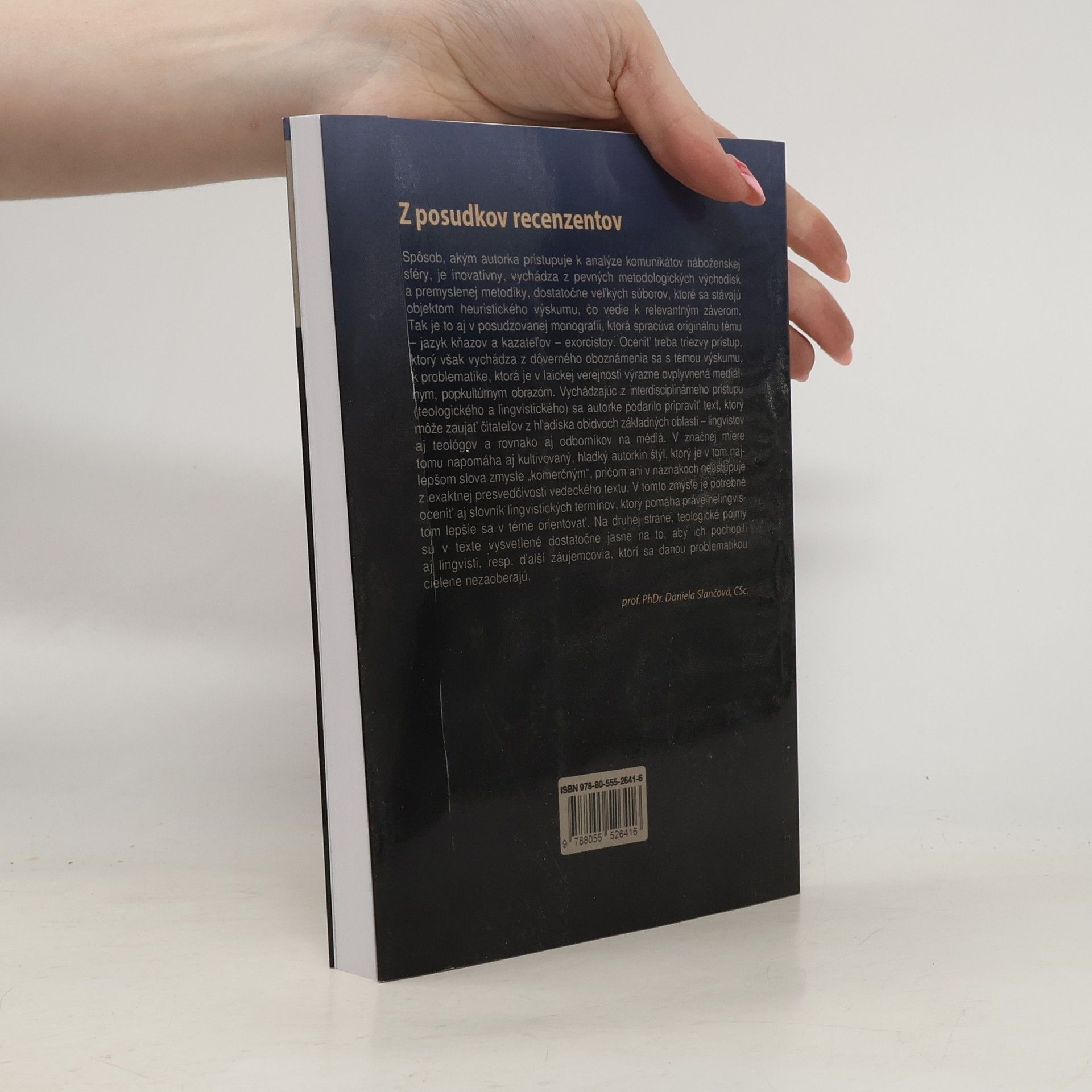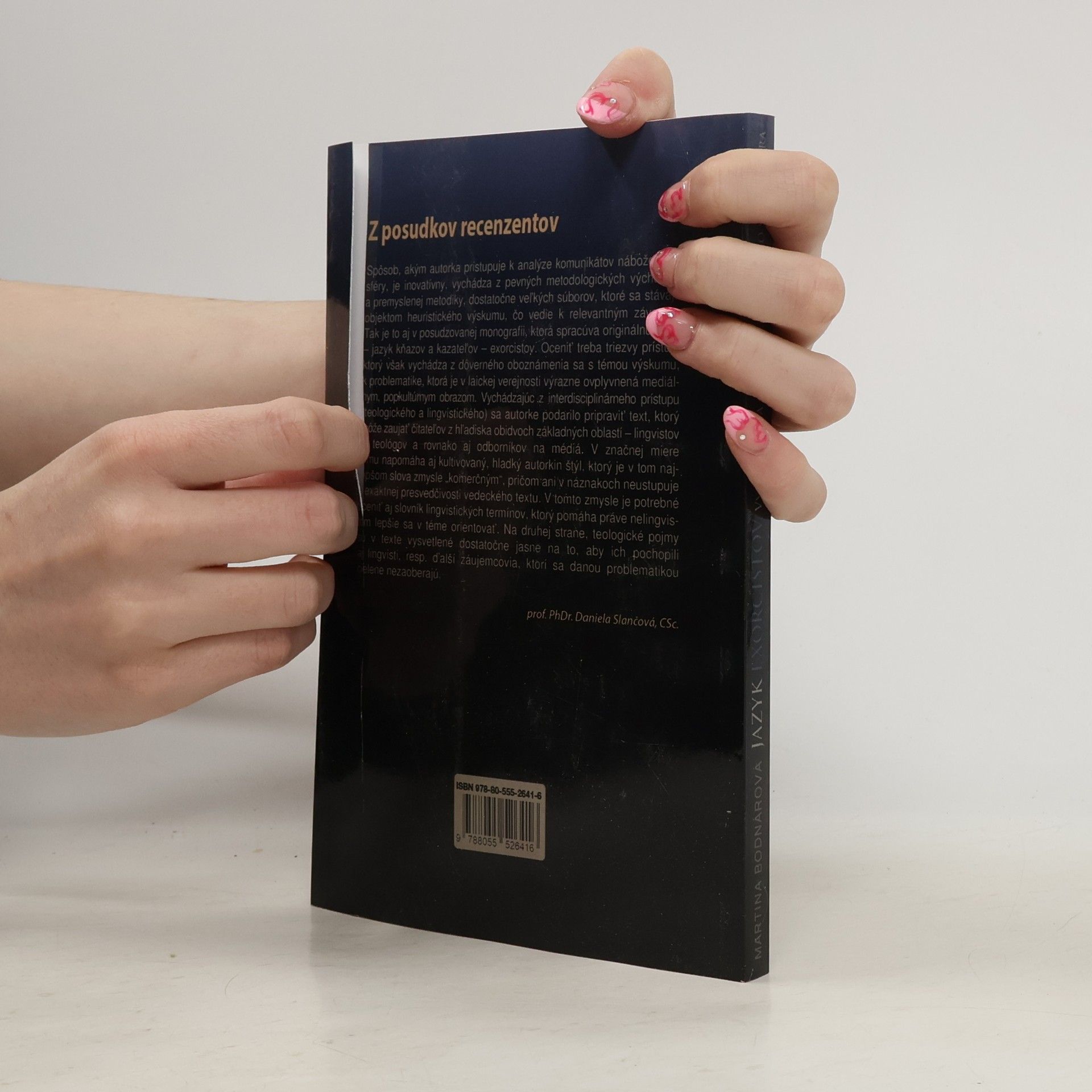 Fenomén exorcizmov a s ním súvisiace postavy exorcistov sa v súčasnosti dostávajú do výraznej pozornosti nielen vo svetovom kontexte, ale už aj v kontexte náboženskej (komunikačnej) sféry na Slovensku. V súvislosti s exponovanými fenoménmi existuje množstvo rôznych prístupov, od teologických a religionistických cez antropologické a sociologické až po psychologické. Čo však v celom bohatom diapazóne prístupov chýba tak u nás, ako i vo svetovom kontexte, je pohľad lingvistický. Hlavným zámerom publikácie je predstaviť v súčanosti značne populárny, no i kontroverzný fenomén exorcizmov a exorcistov ako jeden z pozoruhodných aj aktuálnych výskumných problémov lingvistiky. Naše (pilotné) lingvistické uvažovanie je zamerané na fenomén eorcizmu v kresťanskokatolíckom prostredí a odvíjame ho predovšetkým od prístupu teológie. Predpokladom nášho uvažovania je pritom afirmatívne stanovisko k sledovanému fenoménu. Na jazyk exorcistov nazeráme vo svetle dvoch metodologických konceptov - teórie komunikačného registra a konceptu individuálneho personálneho štýlu. V centre našej výskumnej pozornosti stoja hovorené monologické komunikáty deviatich najznámejších a mediálne najexponovanejších slovenských kazateľov a exorcistov.