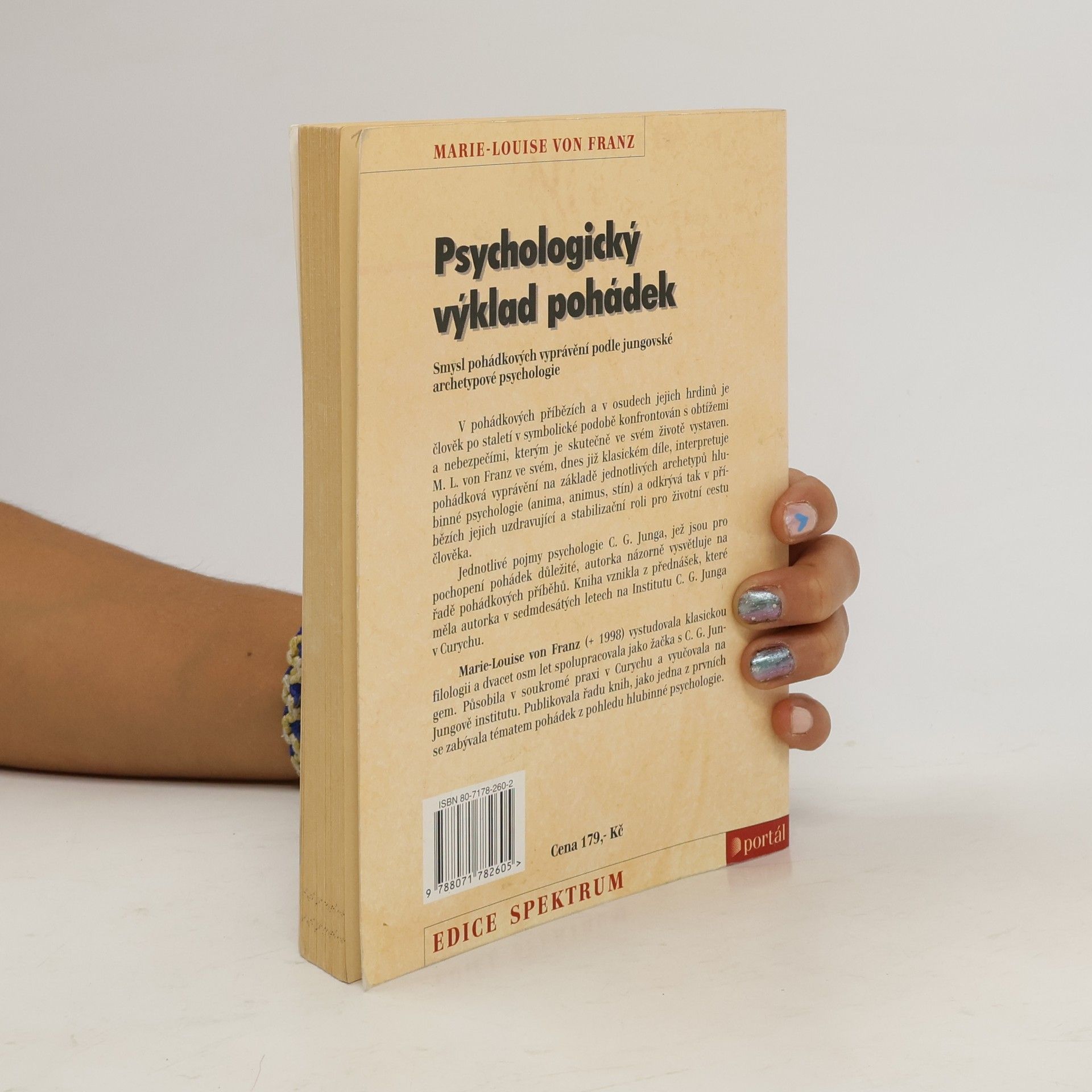 Psychologický výklad pohádek : smysl pohádkových vyprávění podle jungovské archetypové psychologie. Žačka C. G. Junga interpretuje pohádková vyprávění na základě jednotlivých archetypů hlubinné psychologie. V pohádkových příbězích a v osudech jejich hrdinů je člověk po staletí v symbolické podobě konfrontován s obtížemi a nebezpečími, kterým je sám v životě vystaven. M. L. von Franz ve svém, dnes již klasickém díle, interpretuje pohádková vyprávění na základě jednotlivých archetypů hlubinné psychologie a odkrývá tak v příbězích jejich uzdravující a stabilizační roli pro životní cestu člověka. Jednotlivé pojmy psychologie C. G. Junga, jež jsou pro pochopení pohádek důležité, jsou názorně vysvětleny na řadě pohádkových příběhů. Kniha vznikla z přednášek, které měla autorka v sedmdesátých letech na Institutu C. G. Junga v Curychu. 1. vydání