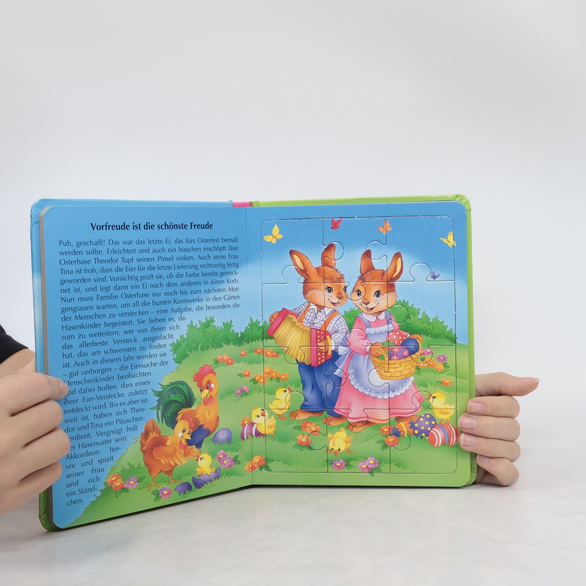 Spiel, Spaß und fünf kleine (Osterhasen-)Geschichten samt Puzzlebild in einem Buch.