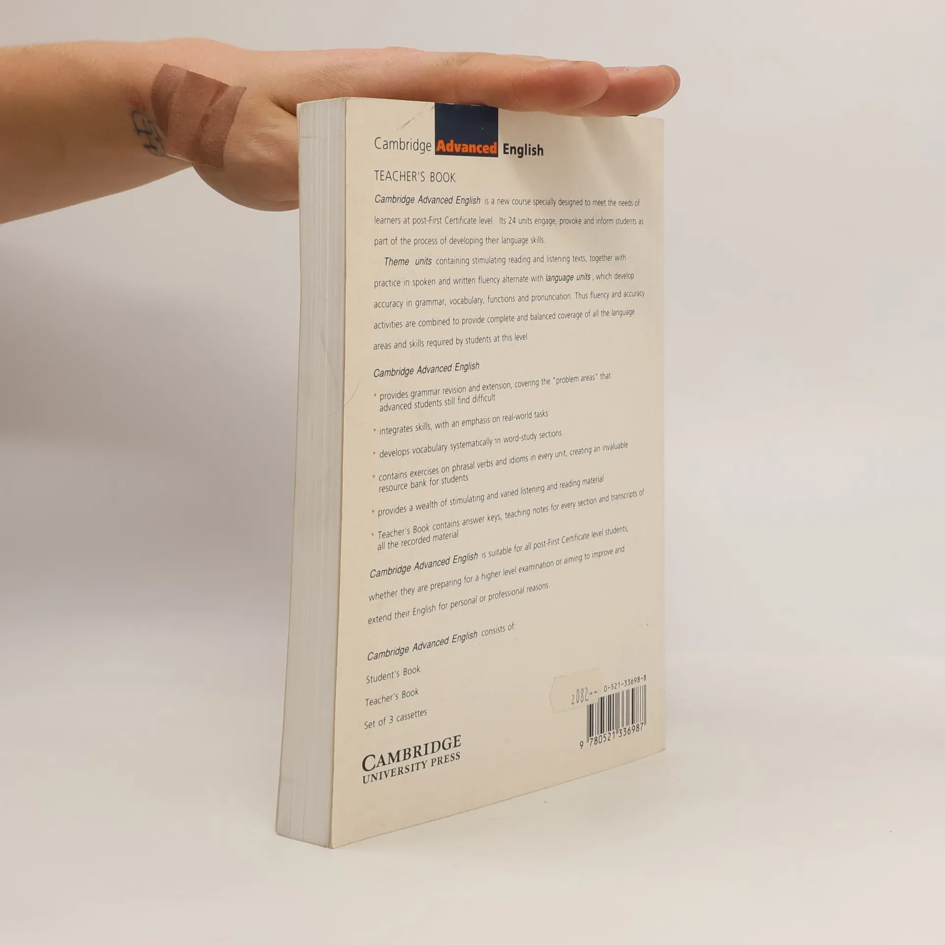Cambridge Advanced English is a main course book designed specially for learners of English as a foreign language who are at post-First Certificate level. Its 24 units engage, provoke and inform students as part of the process of developing their language skills.