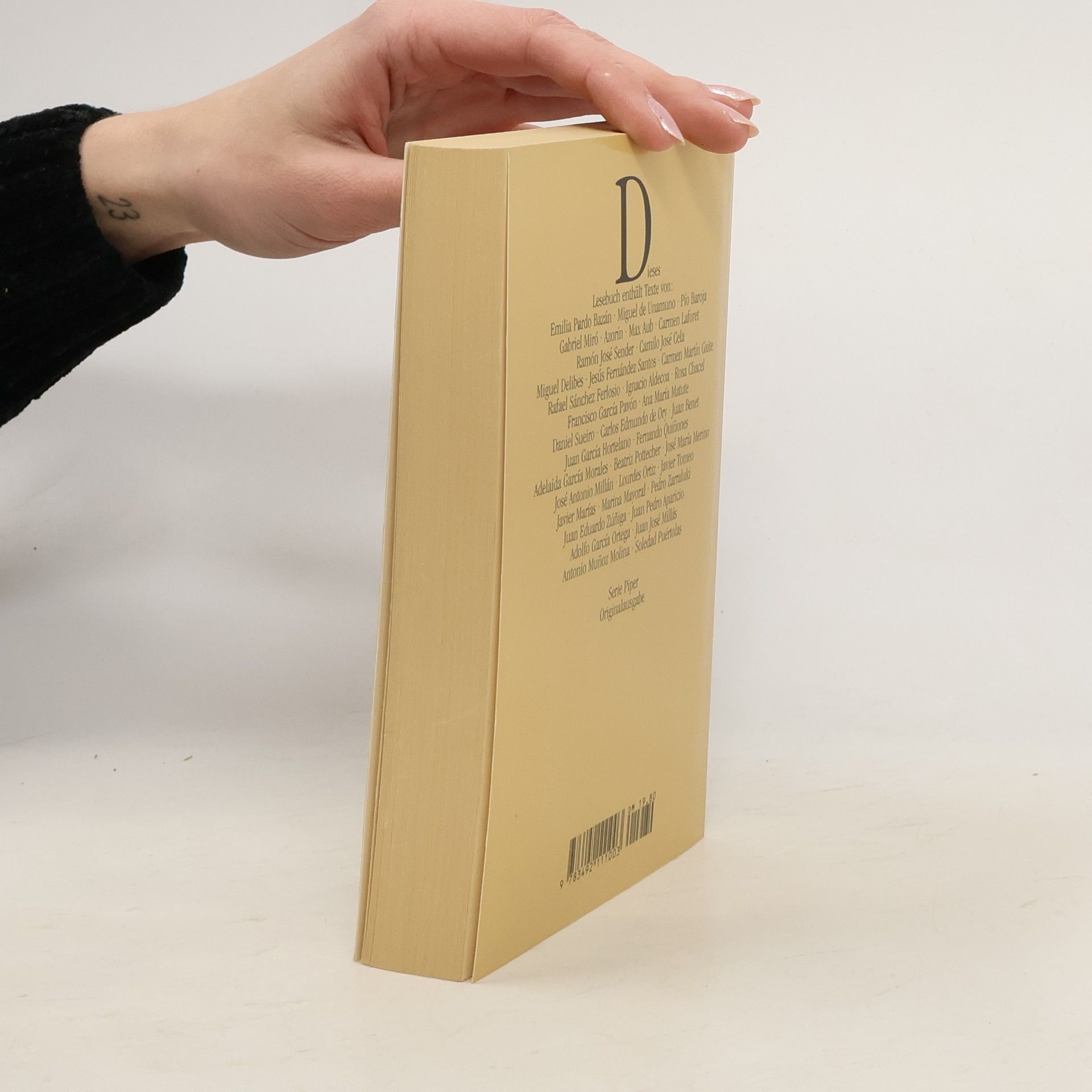 Figueras, Mercedes. [Hrsg]. Die Orange ist eine Frucht des Spanisches Lesebuch. München / Zürich, Piper, 1991. 12,5 x 19cm. 392 Seiten. Originale Broschur. Sehr guter Zustand, neuwertig. [Serie Piper, Band 1100]. Diese Anthologie versammelt 39 Erzählungen aus der Zeit zwischen 1910 und 1990. Knapp und prägnant wiederspiegeln sie die vielfältigen Facetten spanischer Wirklichkeit. Die großen Themen der Literatur - Liebe, Altern, Generationskonflikte, Gewalt und Tod - spielen in den Kurzgeschichten eine zentrale Rolle. Zwei Drittel der Texte liegen erstmals auf deutsch vor. [Piper]