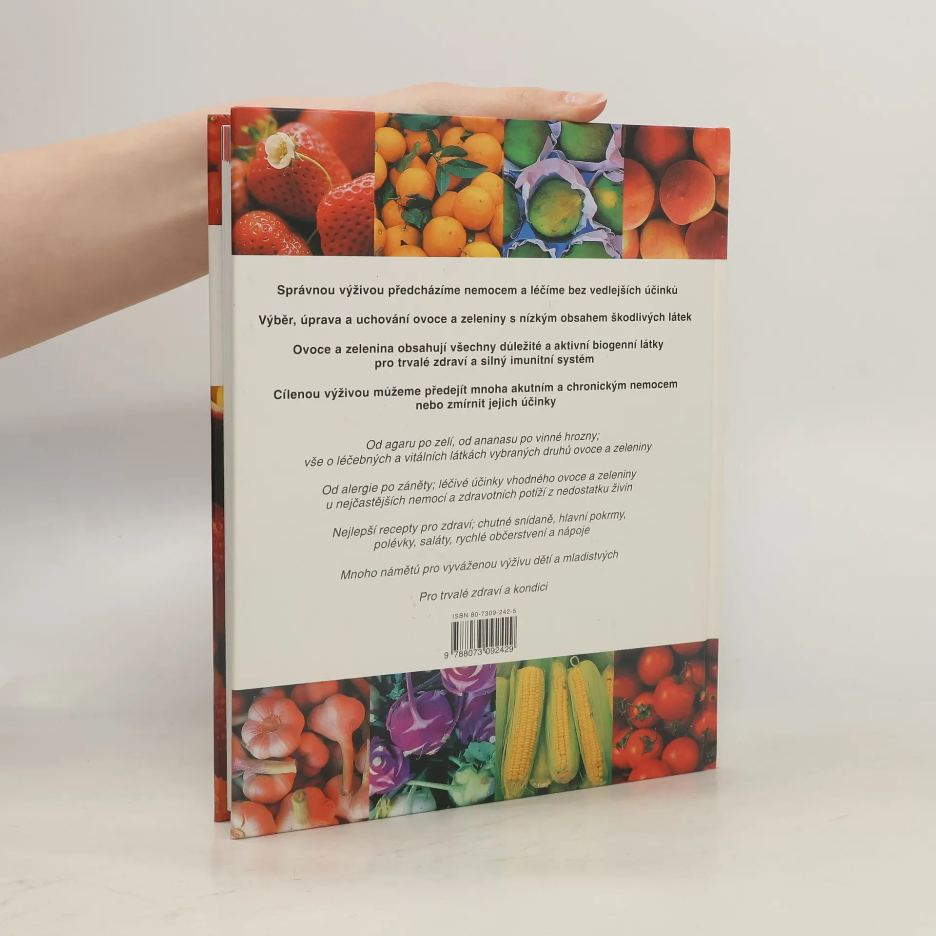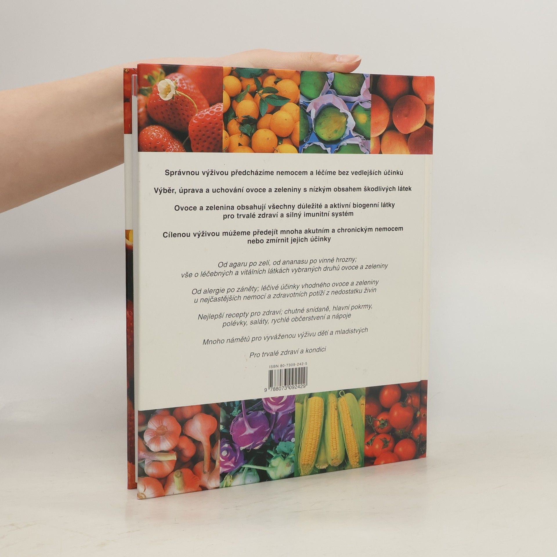 Stále ještě věříte, že léky můžete získat jen v lékárně? Pak vám uniklo, co v posledních letech s pomocí nejmodernější techniky zjistili biochemici- ovoce a zelenina obsahují mnohé léčivé látky, které v nejrůznějším složení poskytují pomoc téměř proti každé nemoci. Rostliny v mnoho miliónů let trvajícím procesu vyvinuly účinné látky aby samy přežily, a ty teď pomáhají člověku, jenž rostliny konzumuje.Tento poznatek ovšem vůbec není takový, jak by se zdálo. Člověk je přece přírodou vybaven k tomu, aby se živil především rostlinami a teprve potom masem.Na rozdíl od některých zvířat není schopen vytvářet životně důležitý vitamín C ve vlastním těle- je odkázán na jeho příjem ve stravě.Člověku totiž dodávají některé vitaminy, minerální látky a další životně důležité živiny pouze ovoce a zelenina.