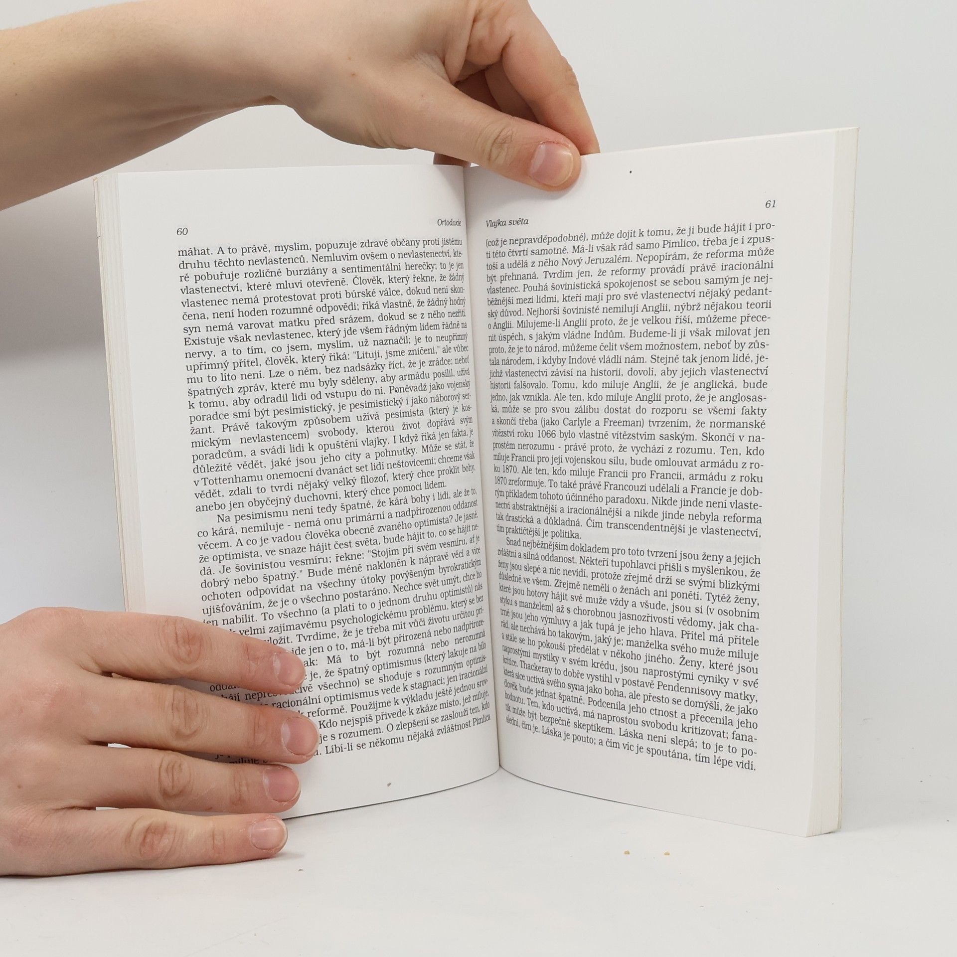 Kniha, kterou Chesterson napsal roku 1908, je v podstatě autorovou duchovní autobiografií či vyznáním a klíčem k jeho dílu. Lze bez nadsázky říci, že představuje tematický horizont a centrum všeho, co publikoval za více než čtyřicet let své bohaté literární činnosti. Je to obrana všeho, co autor považuje pro lidskou existenci za nezbytné. Obrana pravdou postavenou na hlavu, aby přitahovala pozornost, bořila konvence, uvolňovala cestu nezaujatému pohledu na svět a zneklidnila člověka tak, že ztratí půdu pod nohama a začne hledat a přemýšlet sám.... celý text