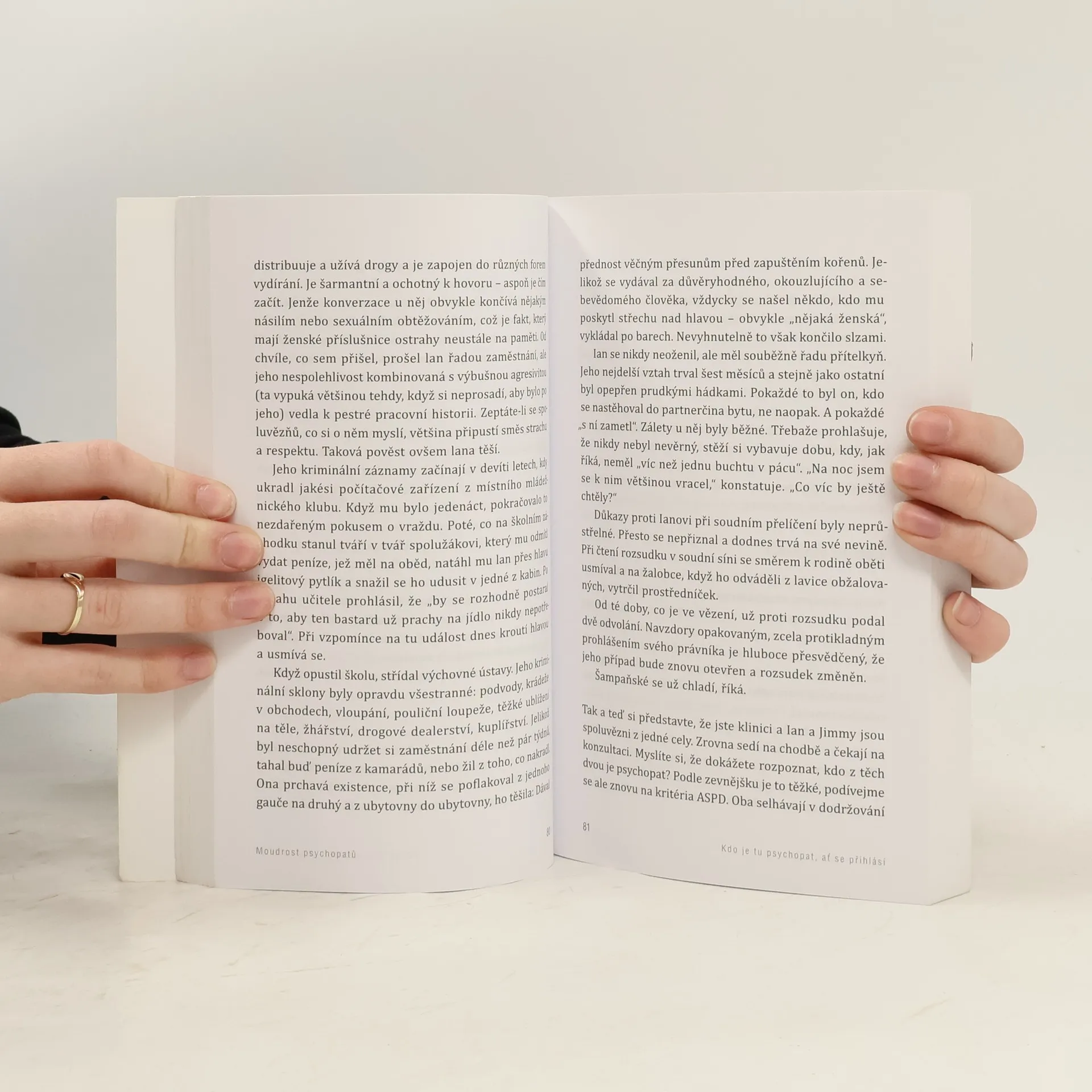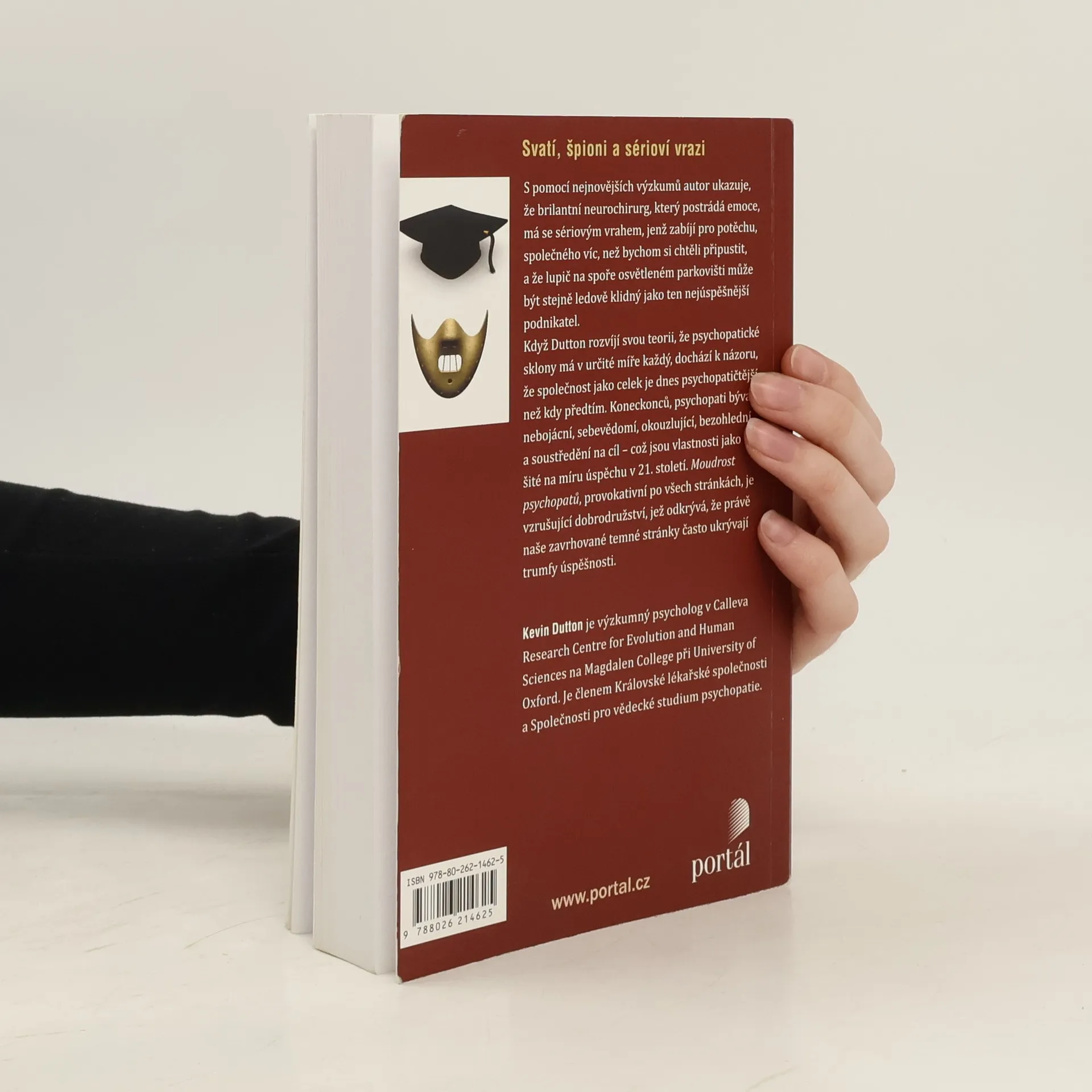 Na své strhující cestě do života psychopatů a jejich vychytralého chování známý oxfordský psycholog Kevin Dutton odhaluje existenci stupnice „šílenství“, na níž má své místo každý z nás. S pomocí nejnovějších metod zobrazování mozku a rozvíjejících se neurověd ukazuje, že brilantní neurochirurg, postrádající empatii, má se sériovým vrahem, jenž zabíjí pro potěchu, společného víc, než bychom si chtěli připustit, a že lupič na spoře osvětleném parkovišti může být stejně ledově klidný jako ten nejúspěšnější podnikatel. Když autor rozvíjí svou teorii, že psychopatické sklony má v určité míře každý, dochází k názoru, že společnost jako celek je dnes psychopatičtější než kdy předtím. Koneckonců, psychopati bývají nebojácní, sebevědomí, okouzlující, bezohlední a soustředění na cíl – což jsou vlastnosti jak šité na míru úspěchu v 21. století. Moudrost psychopatů, provokativní po všech stránkách, je vzrušující dobrodružství, jež odkrývá, že právě naše zavrhované temné stránky často ukrývají trumfy úspěšnosti. Prof. Kevin Dutton je výzkumný psycholog v Calleva Research Centre for Evolution and Human Sciences na Magdalen College při Oxfordské univerzitě. Je členem Královské lékařské společnosti a Společnosti pro vědecké studium psychopatie. Česky vyšla též jeho kniha Psychopatův průvodce na cestě k úspěchu.
