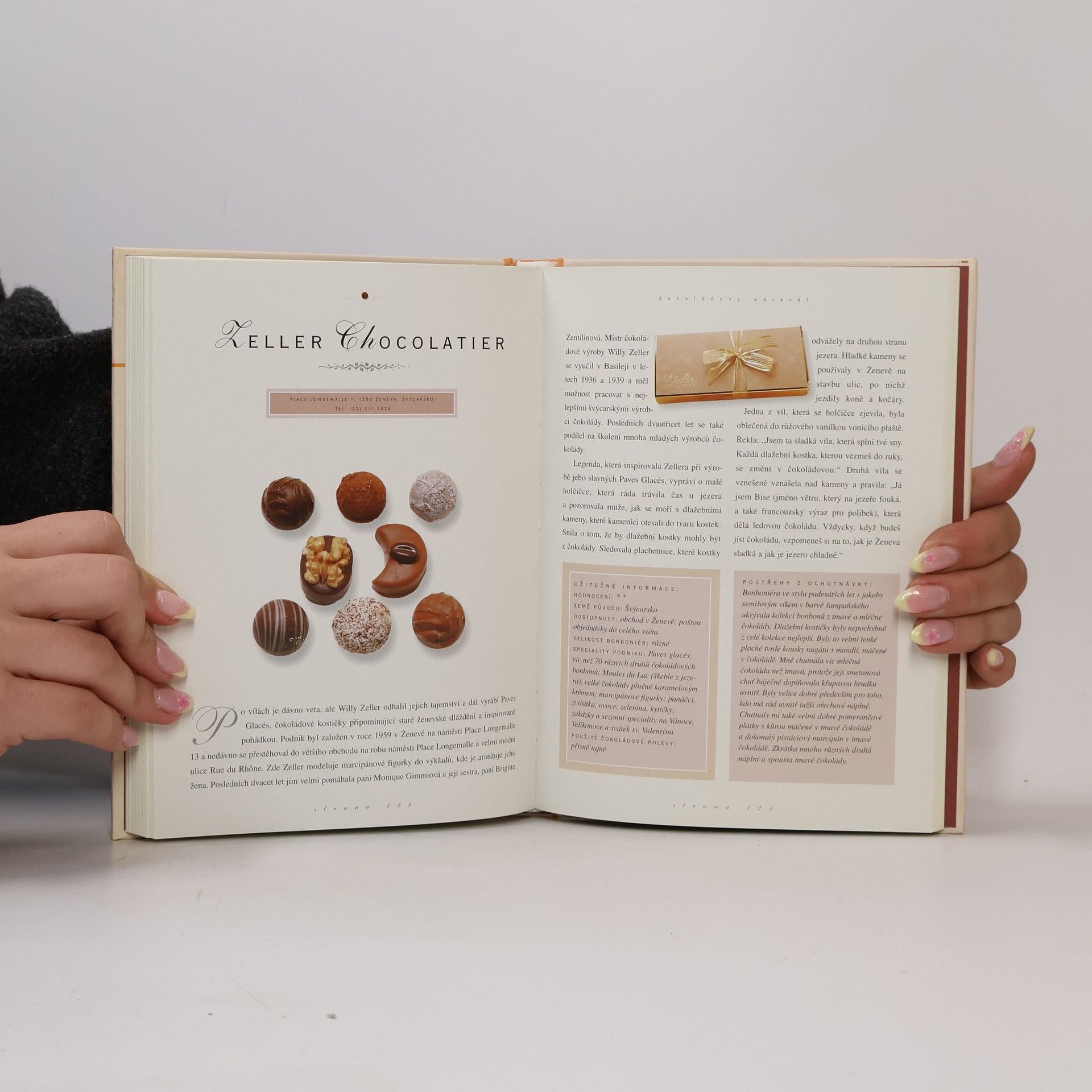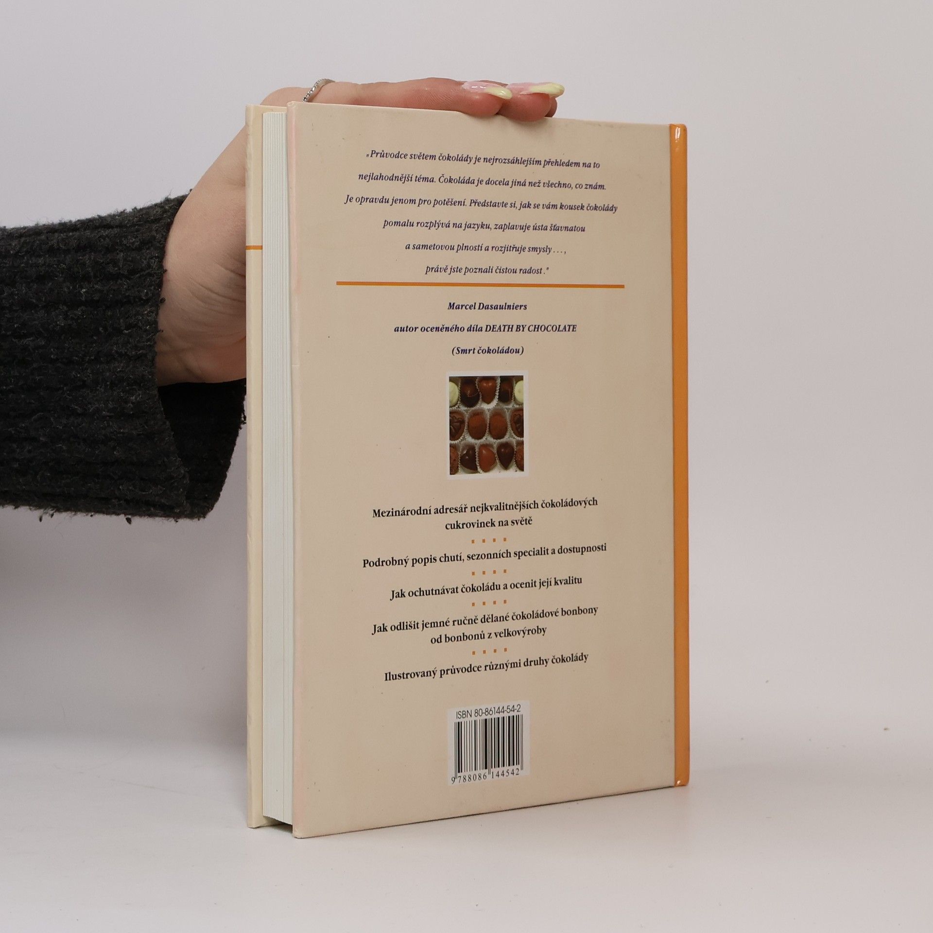 Průvodce znalce světem nejjemnějších čokoládových cukrovinek. "Průvodce světem čokolády je nejrozsáhlejším přehledem na to nejlahodnější téma. Čokoláda je docela jiná než všechno, co znám. Je opravdu jenom pro potěšení. Představte si, jak se vám kousek čokolády pomalu rozplývá na jazyku, zaplavuje ústa šťavnatou a sametovou plností a rozjitřuje smysly..., právě jste poznali čistou radost." Marcel Dasaulniers, autor Death by chocolate (Smrt čokoládou)
