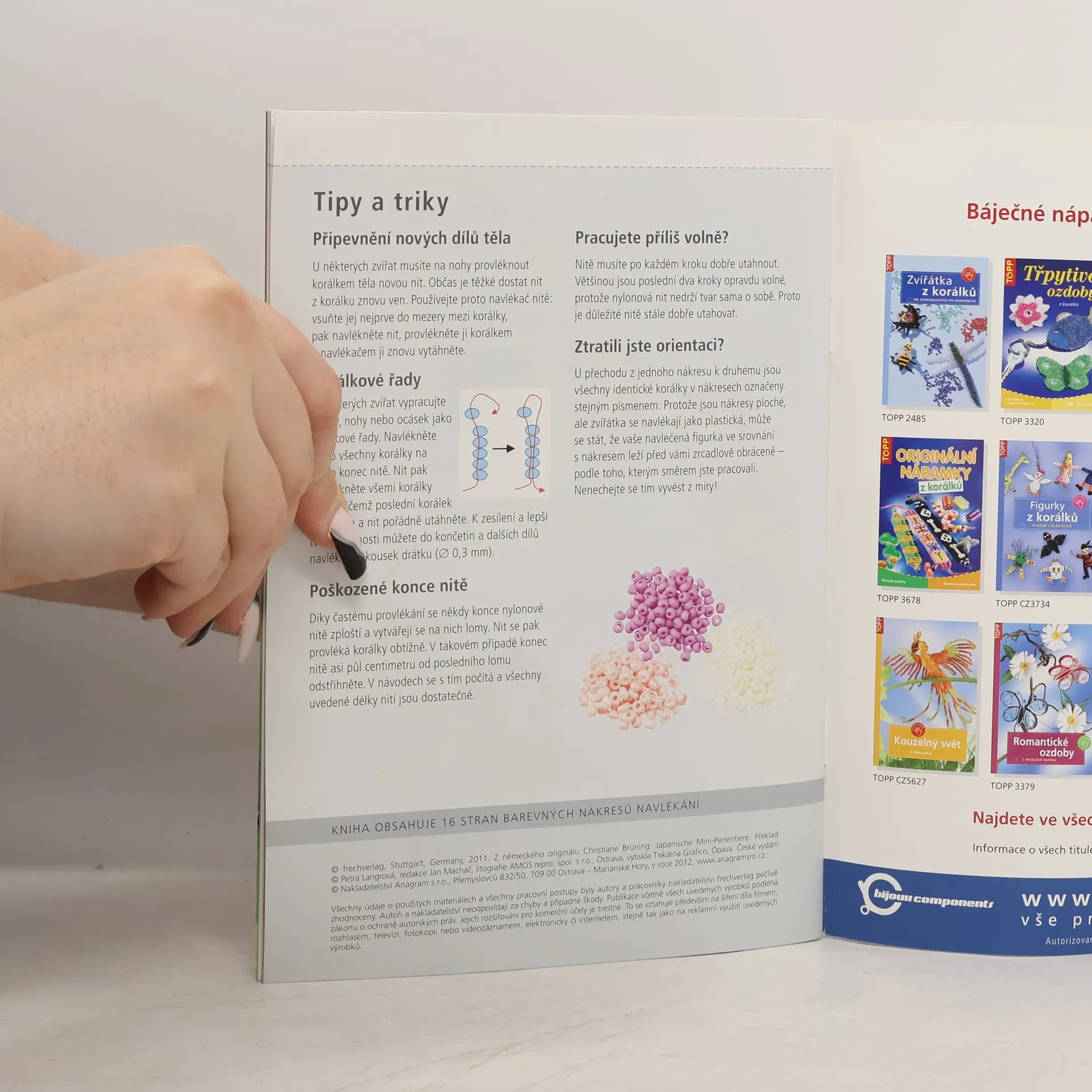 Podle této knížky se naučíte krok za krokem vytvářet japonskou technikou navlékání z malých rokajlových korálků veselé figurky. Navlékáním korálku za korálkem vzniknou malé kočičky, hraví pejsci, veselí tučňáci, štěbetaví ptáčci a mnoho dalších zvířátek. S podrobnými popisy a snadno srozumitelnými přehlednými barevnými nákresy se vám jistě podaří každé zvířátko snadno vytvořit.