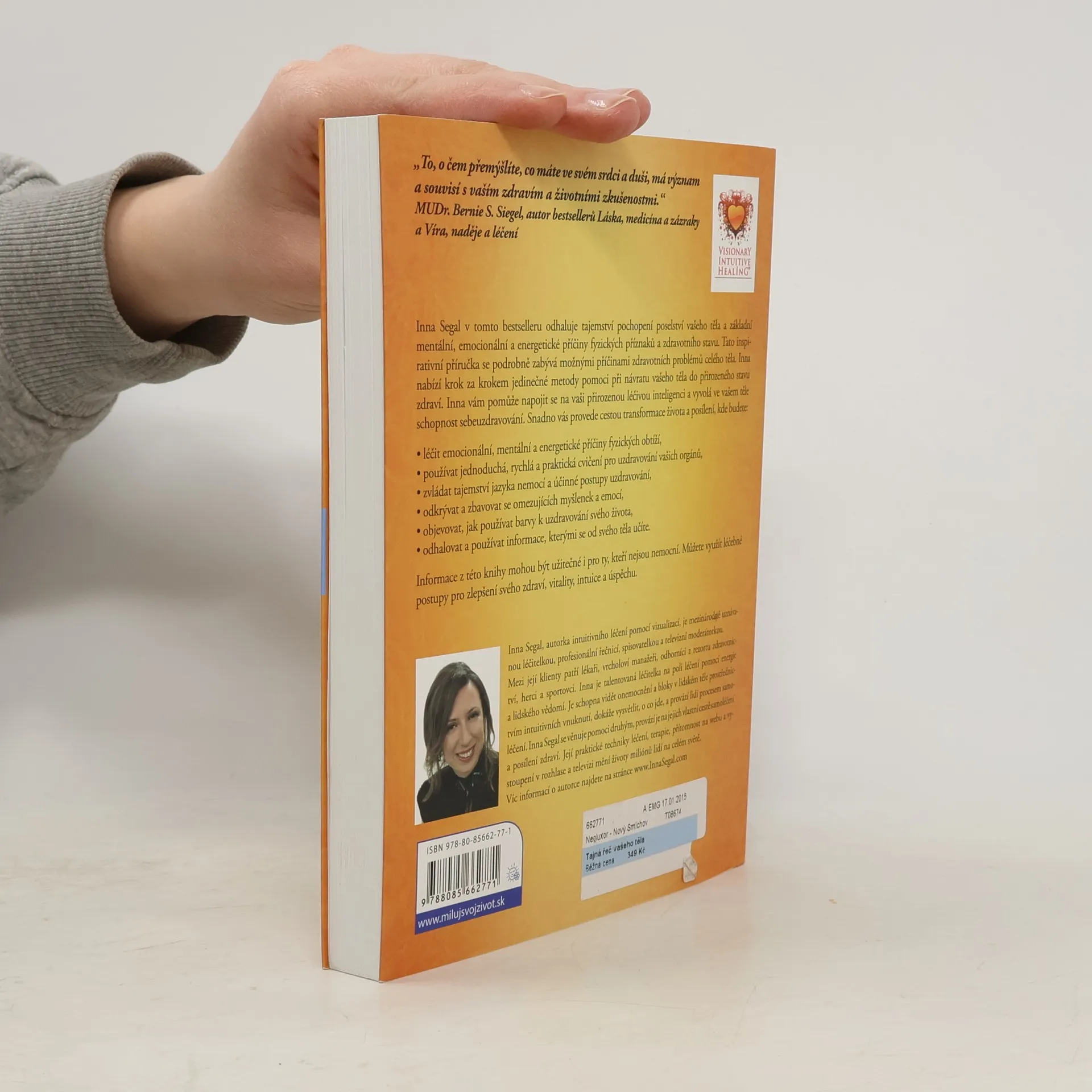 Inna Segal v tomto bestselleru odhaluje tajemství pochopení poselství vašeho těla a základní mentální, emocionální a energetické příčiny fyzických příznaků a zdravotního stavu. Tato inspirativní příručka se podrobně zabývá možnými příčinami zdravotních problémů celého těla. Inna nabízí krok za krokem jedinečné metody pomoci při návratu vašeho těla do přirozeného stavu zdraví. Inna vám pomůže napojit se na vaši přirozenou léčivou inteligenci a vyvolá ve vašem těle schopnost sebeuzdravování. Snadno vás provede cestou transformace života a posílení, kde budete: - léčit emocionální, mentální a energetické příčiny fyzických obtíží, - používat jednoduchá, rychlá a praktická cvičení pro uzdravování vašich orgánů, - zvládat tajemství jazyka nemocí a účinné postupy uzdravování, - odkrývat a zbavovat se omezujících myšlenek a emocí, - objevovat, jak používat barvy k uzdravování svého života, - odhalovat a používat informace, kterými se od svého těla učíte.