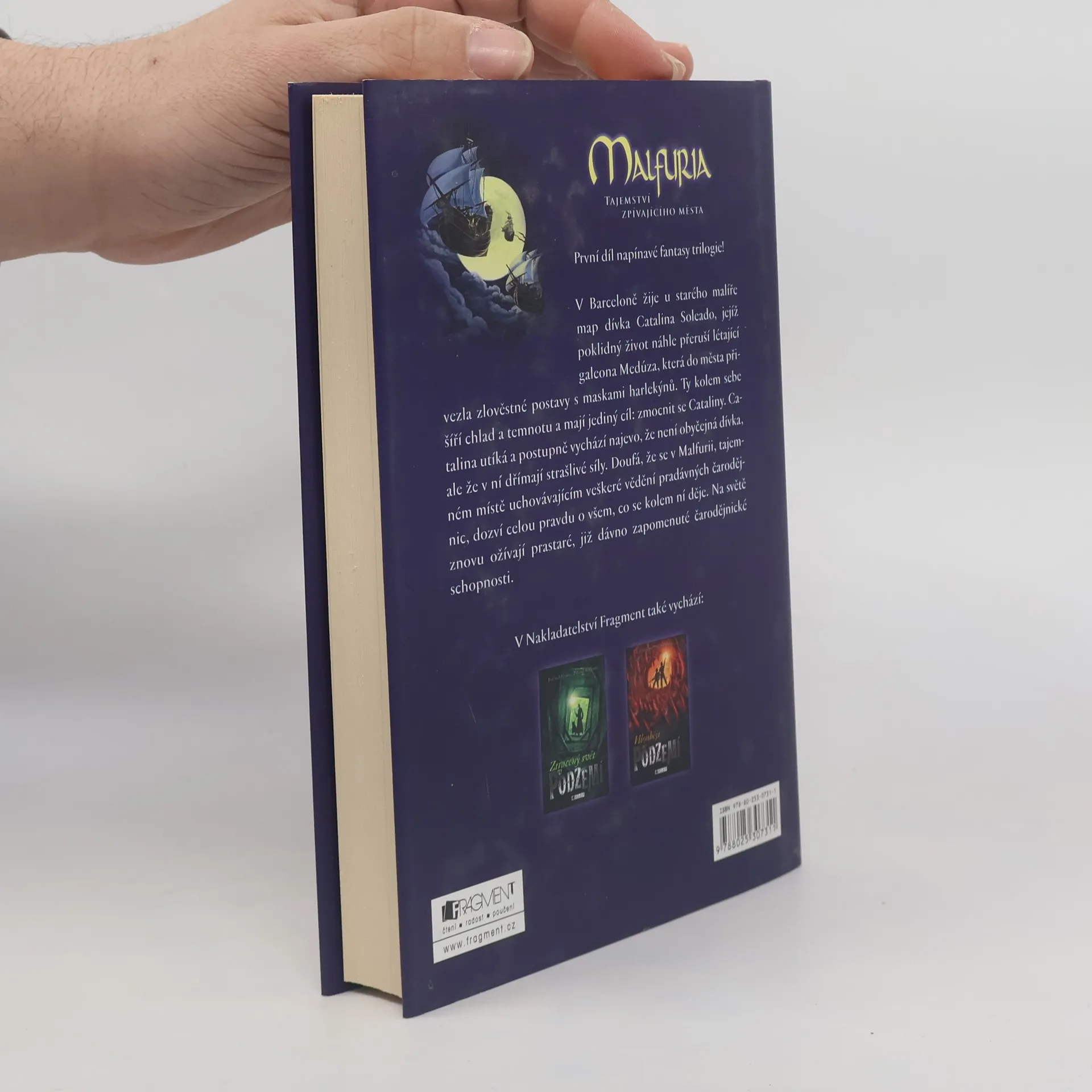 První díl napínavé fantasy trilogie Malfuria. V Barceloně žije u starého malíře map dívka Catalina, jejíž poklidný život náhle přeruší létající galeona Medúza, která do města přiveze zlověstné postavy s maskami harlekýnů. Ty kolem sebe šíří chlad a temnotu a mají jediný cíl: zmocnit se Cataliny. Catalina utíká a postupně vychází najevo, že není obyčejná dívka, ale že v ní dřímají strašlivé síly. Doufá, že se v Malfurii, tajemném místě uchovávajícím veškeré vědění pradávných čarodějnic, dozví celou pravdu o všem, co se kolem ní děje. Na světě znovu ožívají prastaré, již dávno zapomenuté čarodějnické schopnosti. První vydání