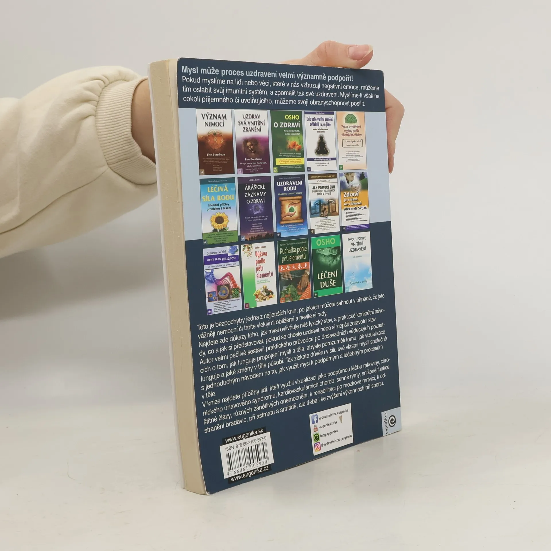 Tato kniha je jedním z nejlepších průvodců pro ty, kteří čelí vážným zdravotním problémům nebo chronickým obtížím. Obsahuje důkazy o tom, jak mysl ovlivňuje fyzický stav, podložené vědeckými studiemi a úspěšnými příklady. Nabízí konkrétní návody na vizualizace, které mohou pomoci při uzdravování nebo zlepšení zdraví. Tyto vizualizace jsou zábavné a povzbudivé, což přispívá k pozitivnímu naladění a celkovému zlepšení stavu. Autor pečlivě shrnuje vědecké poznatky o propojení mysli a těla, aby čtenáři porozuměli, jak vizualizace fungují a jaké změny vyvolávají v těle. Kniha obsahuje příběhy lidí, kteří vizualizaci využili jako podpůrnou léčbu při různých onemocněních, včetně rakoviny, chronického únavového syndromu, kardiovaskulárních chorob a dalších. Ukazuje, jak může mysl významně podpořit proces uzdravení. Negativní myšlenky mohou oslabit imunitní systém a zpomalit uzdravení, zatímco pozitivní a uvolňující myšlenky mohou obranyschopnost posílit. Tato kniha je cenným zdrojem pro každého, kdo hledá alternativní přístupy k léčbě a zlepšení zdraví.