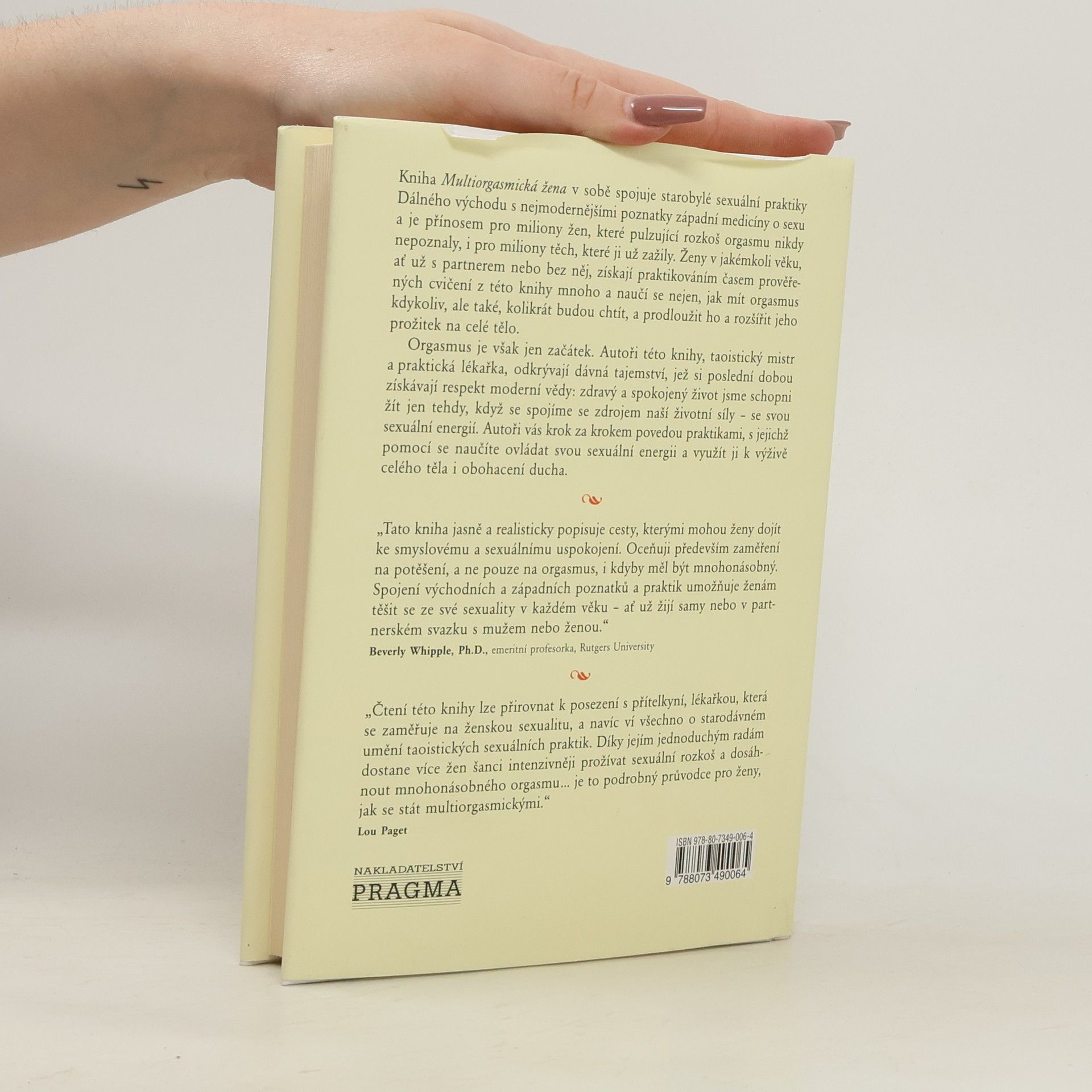 Objevte svou vášeň, životní sílu a radost ze sexu. Kniha je určena ženám a nabízí intimní cestu k objevování touhy a sexuálního uspokojení. Začíná testem, který pomáhá uvědomit si jedinečné sexuální možnosti. Následují cvičení, jež umožňují zažít mnohonásobné orgasmy a posílit zdraví a vitalitu. Zaměřuje se také na vývoj a změny sexuálních potřeb v průběhu života ženy. Cvičení přispívají k tomu, aby ženy, které orgasmus nikdy nezažily, mohly dosáhnout multiorgasmických prožitků, a prohlubují sexuální život těch, které už orgasmy znají. Taoistický přístup odhaluje, že hluboké sexuální naplnění nezávisí na počtu orgasmů, ale na radosti a vitalitě, kterou sexuální a emocionální život přináší. Vztah k tělu, touhám a potěšení ovlivňuje pocit uspokojení a celkové zdraví. Kniha spojuje starobylé praktiky Dálného východu s moderními poznatky západní medicíny a je přínosem pro ženy všech věkových kategorií. Cvičení umožňují naučit se mít orgasmus kdykoliv a prodloužit jeho prožitek. Orgasmus je jen začátek; autoři odkrývají tajemství, která ukazují, že zdravý a spokojený život je možný pouze spojením se svou sexuální energií. Krok za krokem vás provedou praktikami, které obohatí tělo i ducha.