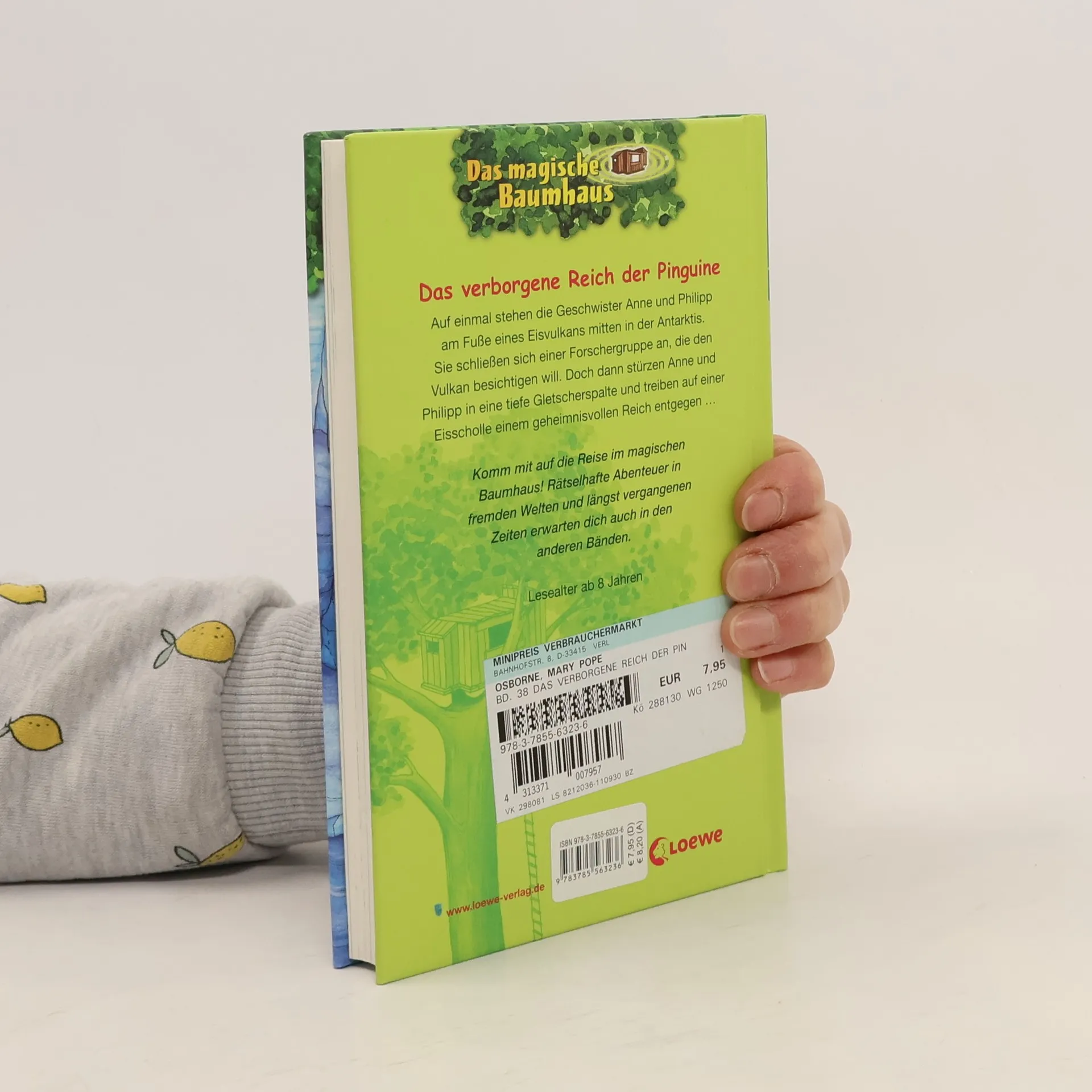 Das Buch ist bei deiner Buchhandlung vor Ort und bei vielen Online-Buchshops erhältlich! + Bücher, die Kinder gerne lesen wollen + Beliebte Themen: Abenteuer, Tiere und fremde Länder + Hochwertiges Hardcover + Mit vielen Illustrationen + Bereits über 10 Millionen verkaufte Bücher der Baumhaus-Reihe + Ausgewogenes Text-Bild-Verhältnis + Große Schrift + Kurze Kapitel + Auf einmal stehen die Geschwister Anne und Philipp am Fuße eines Eisvulkans mitten in der Antarktis. Sofort schließen sie sich einer Forschergruppe an, die den Vulkan besichtigen will. Doch dann stürzen Anne und Philipp in eine tiefe Gletscherspalte und treiben auf einer Eisscholle einem geheimnisvollen Reich entgegen … Komm mit auf die Reise im magischen Baumhaus! Rätselhafte Abenteuer in fremden Welten und längst vergangenen Zeiten erwarten dich auch in den anderen Bänden. Die beliebte Kinderbuch-Reihe von Bestsellerautorin Mary Pope Osborne! Die Geschwister Anne und Philipp reisen mit dem magischen Baumhaus durch die Zeit. Sie erleben spannende Abenteuer, entdecken ferne Länder und lernen viele berühmte Persönlichkeiten kennen.